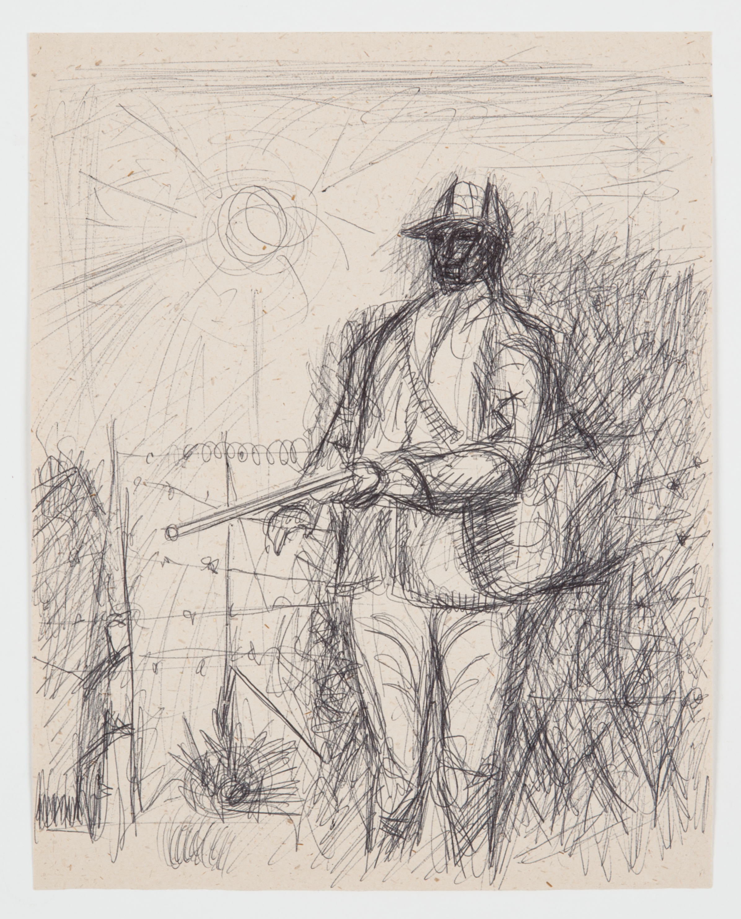 Because Everett Spruce memorized the landscapes he intended to eventually paint, he did not often use drawing as a memory tool. Most of his drawings were used to work out compositional ideas. Unlike many of Spruce's landscape paintings that focus on the vista and the enormity of the Texas landscape, his drawings are more focused on the details. All of these drawings show his interest in the land, or humans interacting with it.