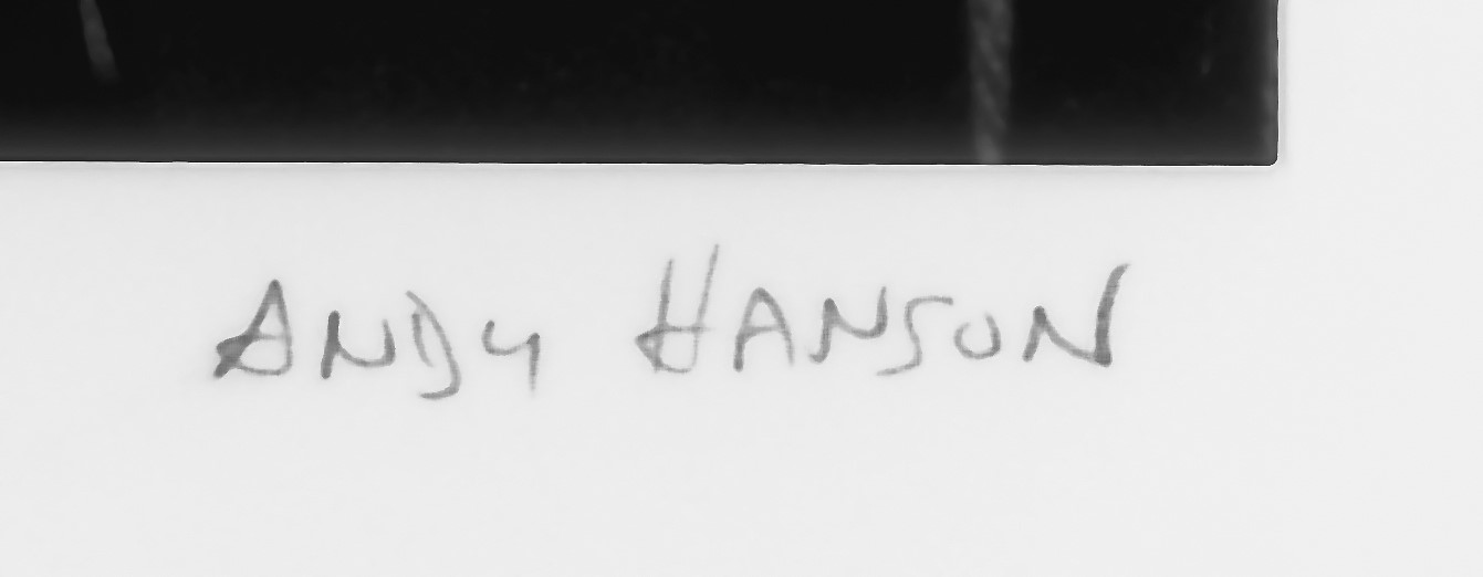 This modern print was produced for gallery inventory during Andy Hanson's lifetime, and with his approval of print quality. Upon his death, his estate allowed the remaining inventory of prints to be sold by Photographic Archives Gallery. The original negative is in the Andy Hanson Collection at DeGolyer Library, Southern Methodist University, Dallas, Texas and the Library holds the copyright.