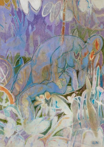 A painting is begun with no prior plans or ideas but rather to find out what will reveal itself once I am involved with it.