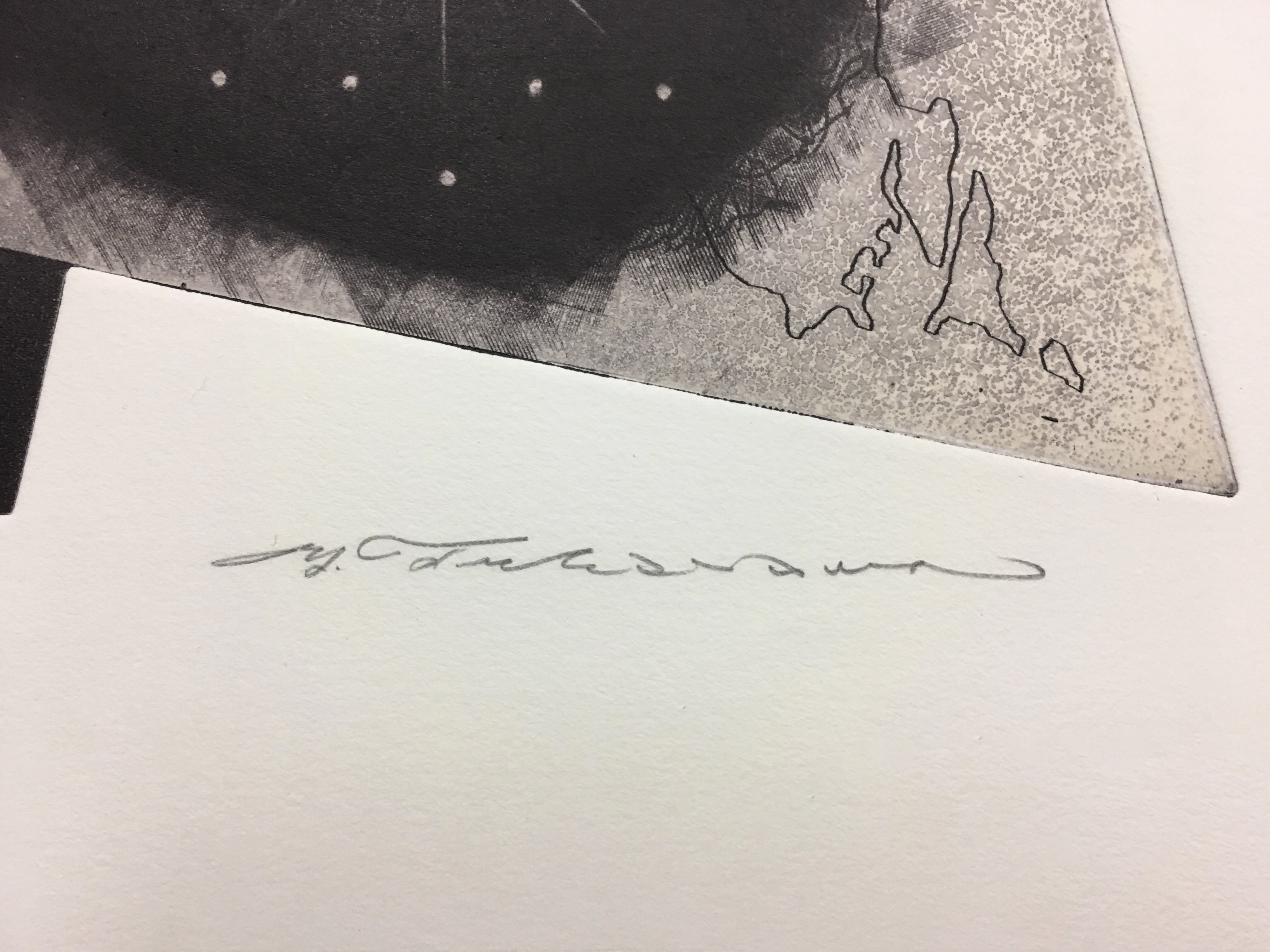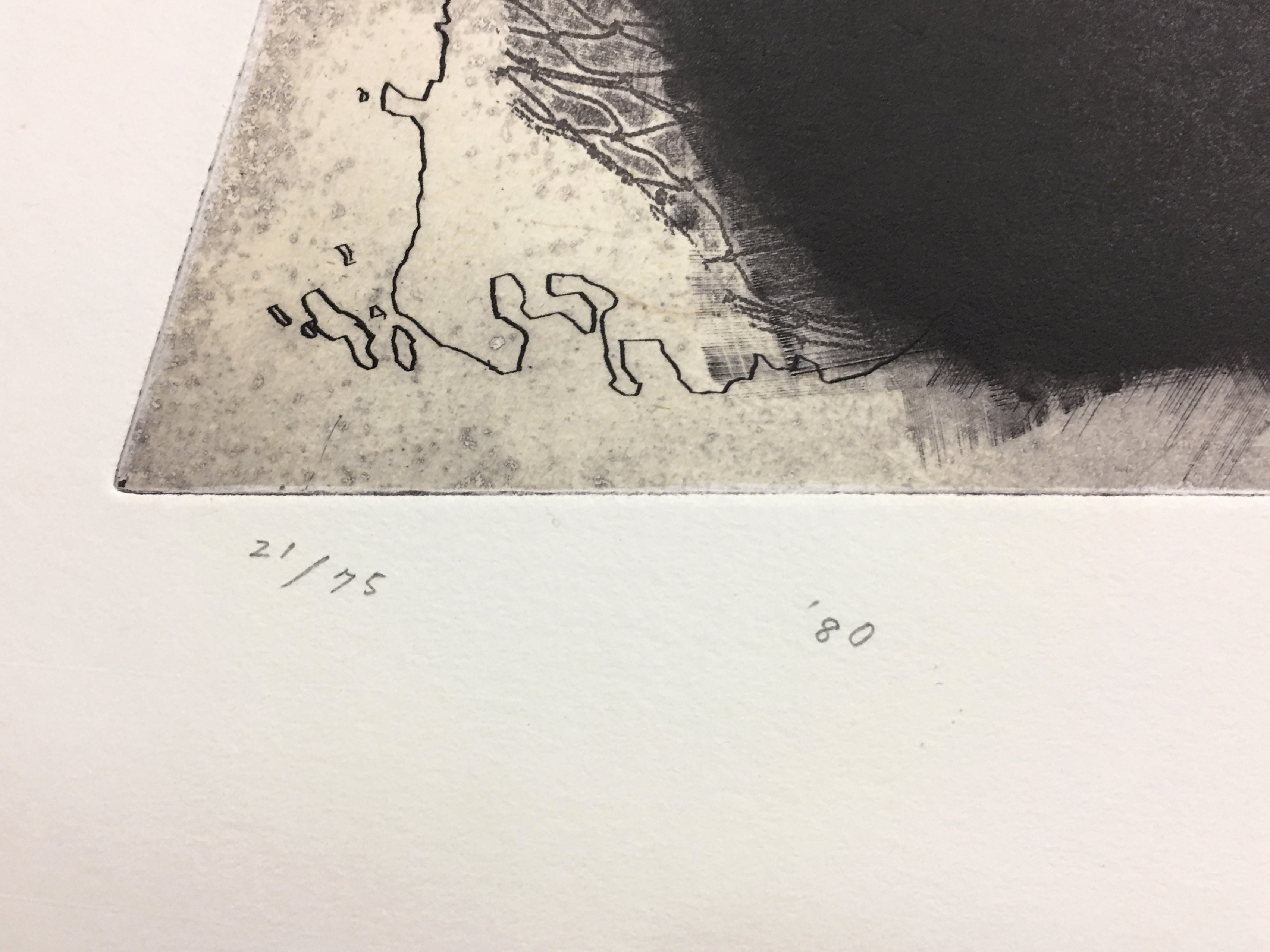 Yukio Fukazawa was a lauded Japanese print maker who is revered for his lyrical and mysterious Intaglio prints. He is known for his skill and fearlessness in combining many intaglio techniques, with both copper plate engraving and etching, in unorthodox ways. He was born in Yamanashi prefecture in Japan but went to grade school on Korea where he and Hiroo Nakahara, the owner of this print, became good friends.