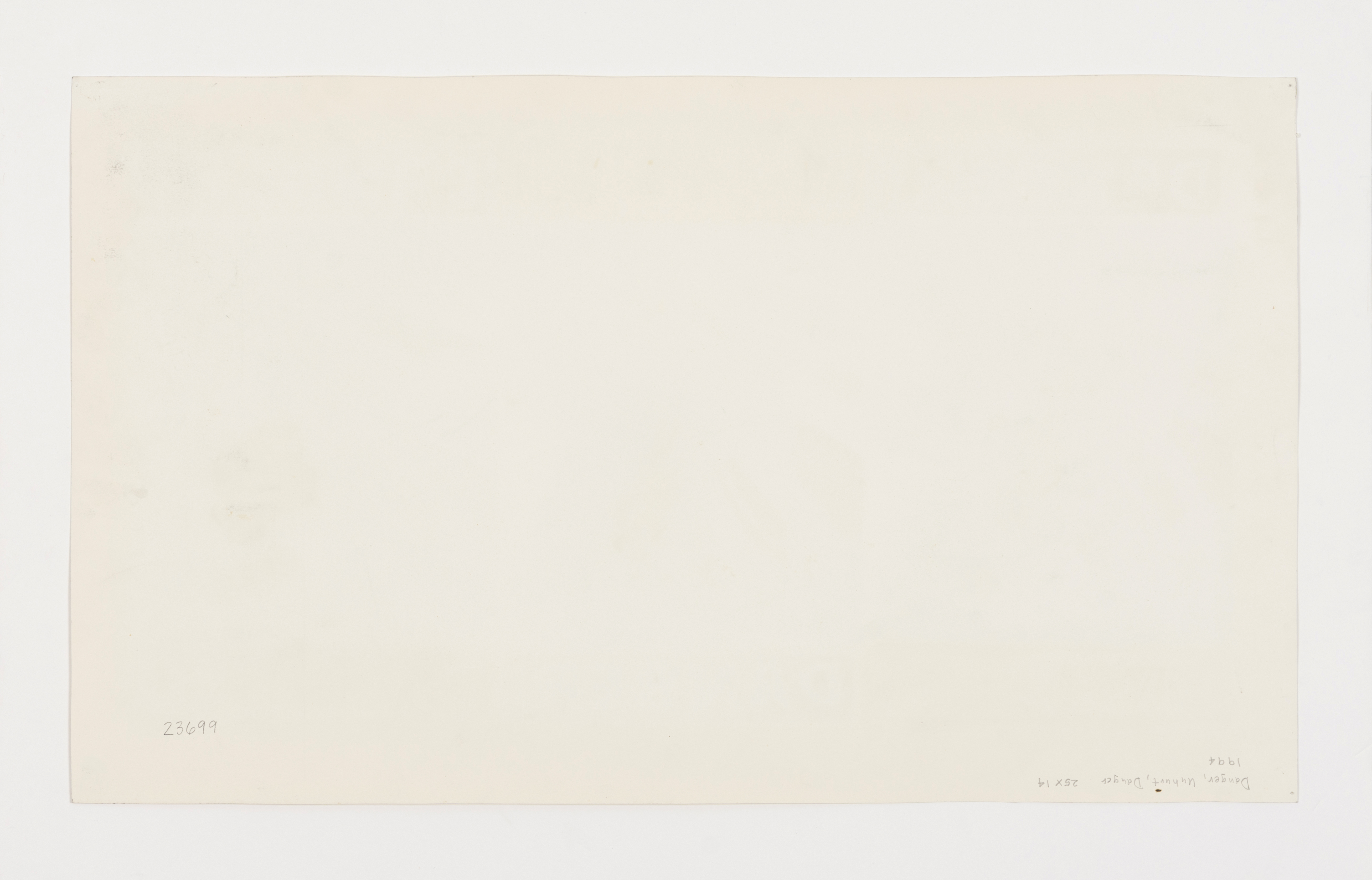 Recto: Overall image area in excellent condition. Various ink splatter and watercolor runs around margin. Three areas were hinging tape was removed at upper left, upper center, and upper right edge in margin. Verso: Slight modeling from materials transfer.