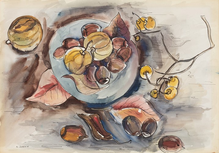 She vacationed on Martha’s Vineyard in 1950 and chose to capture her impressions of the island in pastel. She returned in 52, and this time chose watercolor, possibly more suited to the Island atmosphere.