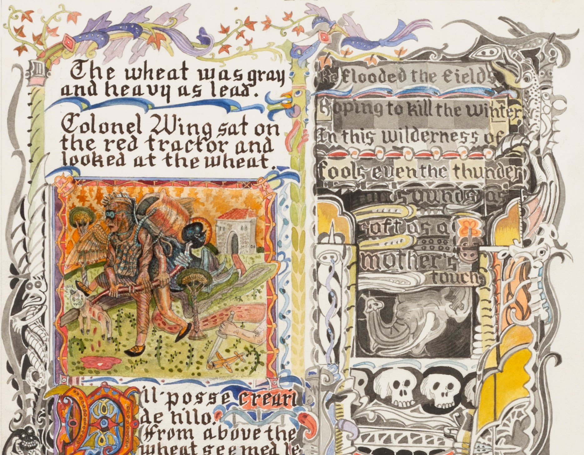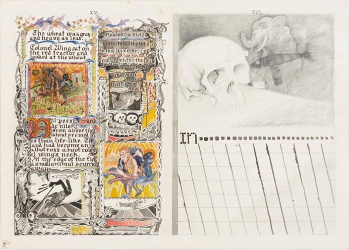 After receiving his master’s degree from Cranbrook Academy, Lee Baster Davis went on to teach printmaking and drawing at East Texas State University in Commerce Texas for over 30 years. Now retired from teaching, he is in his studio most every day, continuing to create the meticulously crafted, highly detailed, visionary narrative drawings and collages in ink and watercolor that he is best known for.
