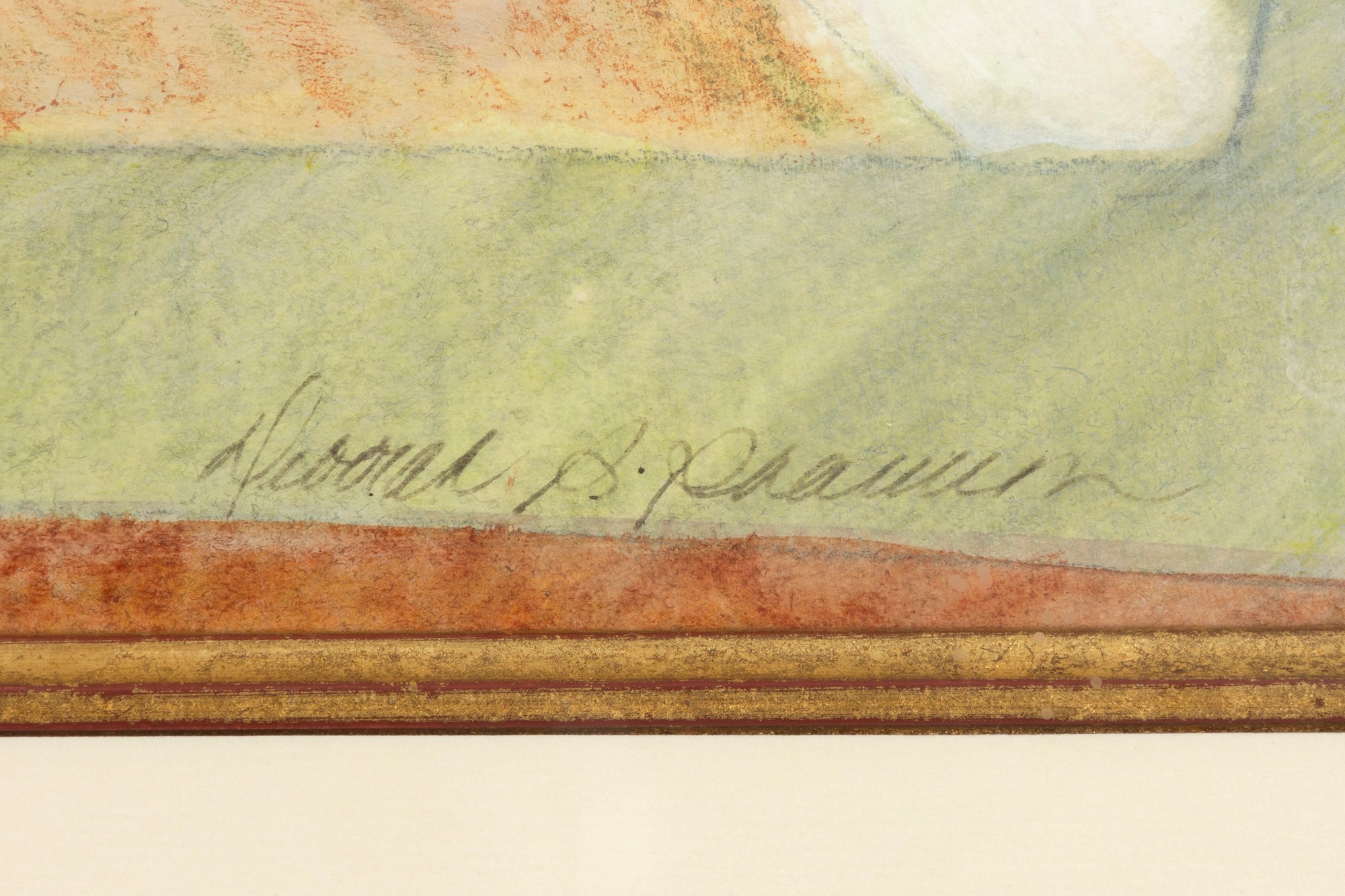 This work was examined in the frame so margins and its verso were not available for inspection. There are no visible issues with what is visible within the mat window.