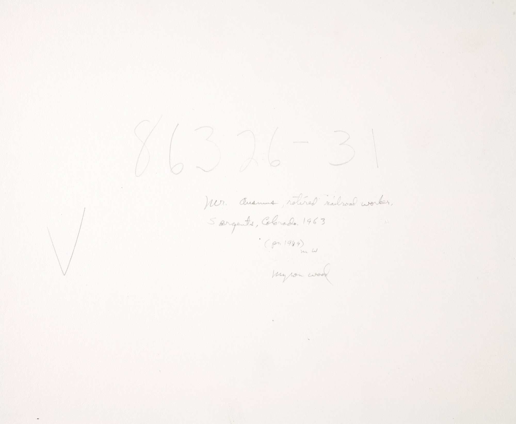 Myron Wood's notation on verso of mount board (pr.1969) indicates he printed this image six years after the negative.