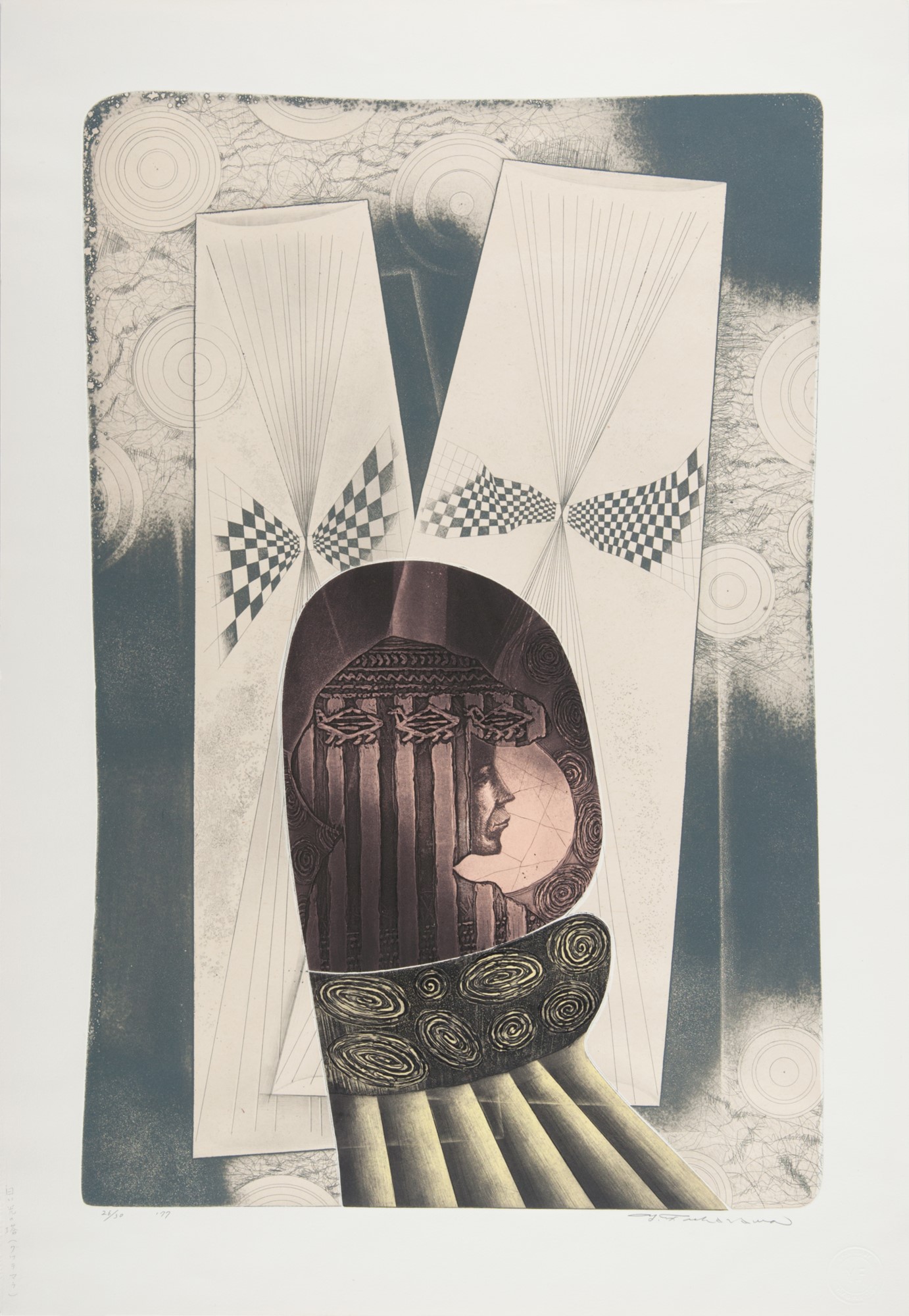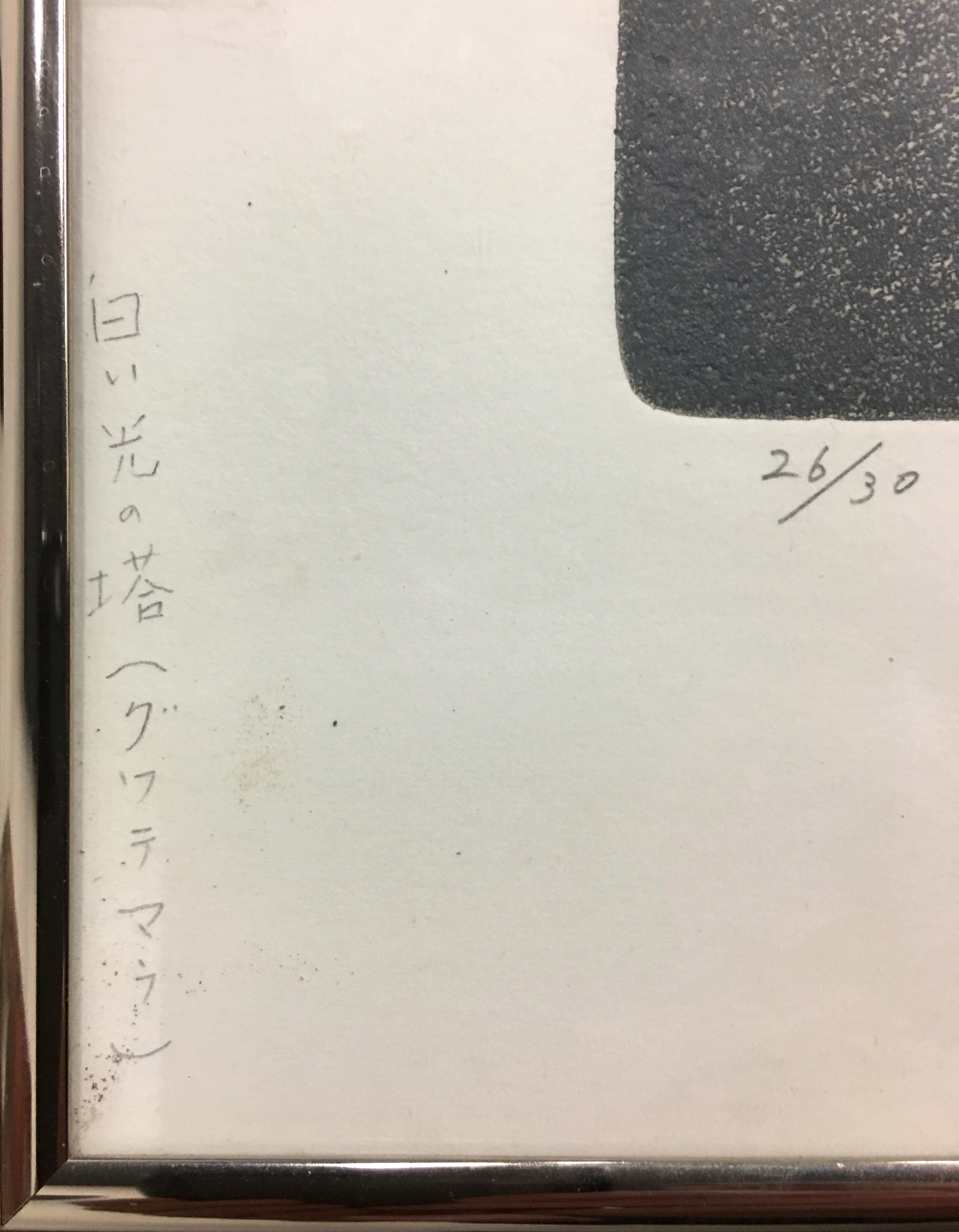 Yukio Fukazawa was a lauded Japanese print maker who is revered for his lyrical and mysterious Intaglio prints. He is known for his skill and fearlessness in combining many intaglio techniques, with both copper plate engraving and etching, in unorthodox ways. He was born in Yamanashi prefecture in Japan but went to grade school on Korea where he and Hiroo Nakahara, the owner of this print, became good friends.