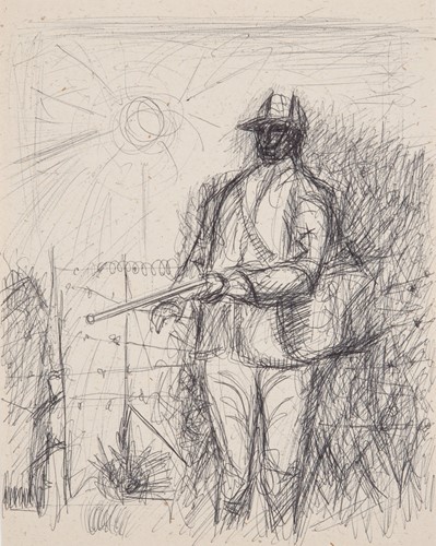 Because Everett Spruce memorized the landscapes he intended to eventually paint, he did not often use drawing as a memory tool. Most of his drawings were used to work out compositional ideas. Unlike many of Spruce's landscape paintings that focus on the vista and the enormity of the Texas landscape, his drawings are more focused on the details. All of these drawings show his interest in the land, or humans interacting with it.