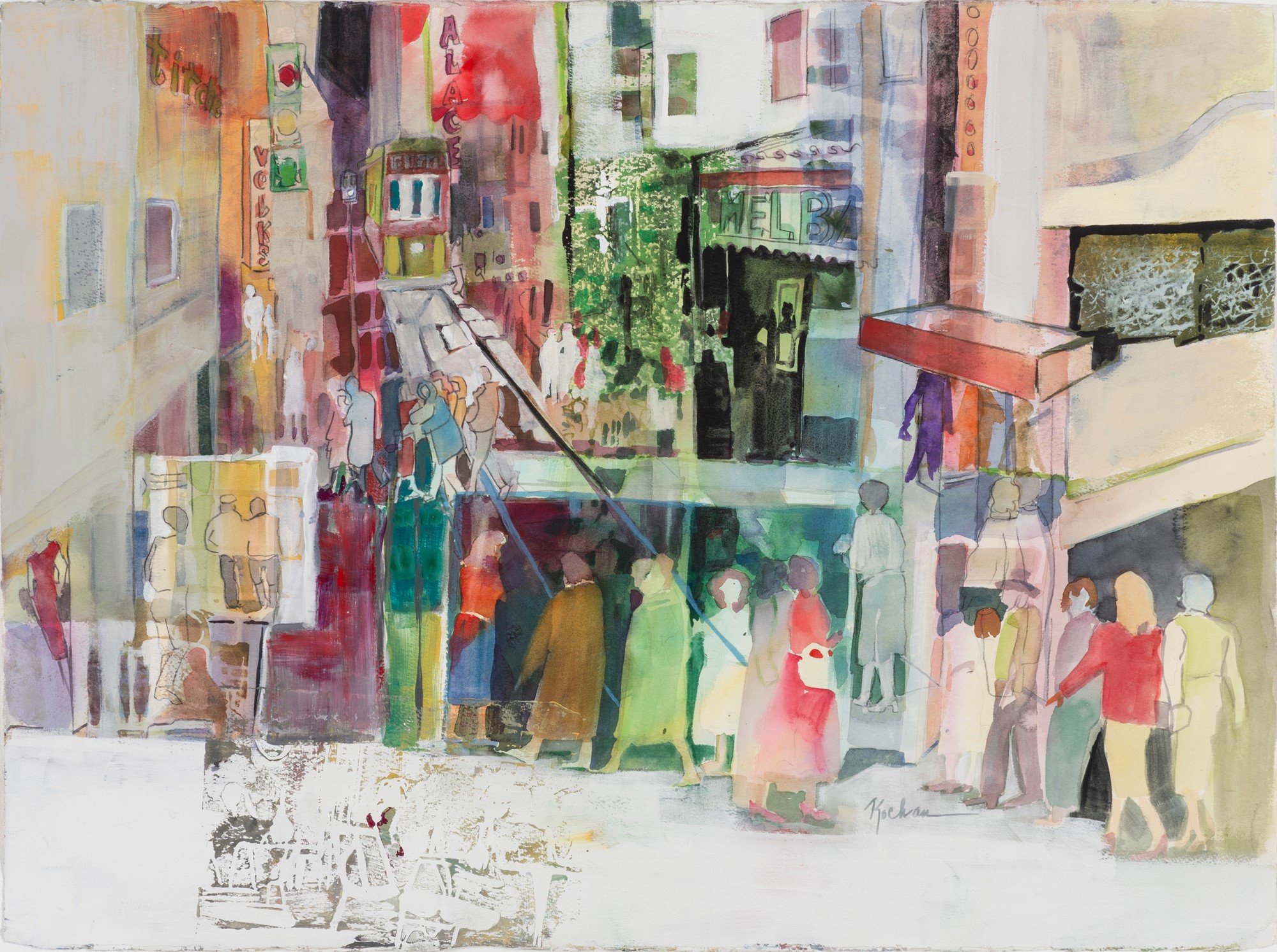 Pat Wheelis Kochan is a Dallas, Texas based artist, teacher, and author. She studied art and design at the University of Colorado and has worked in water media, acrylic, oil, mixed media, monotypes, and printmaking throughout her career. Her preferred styles range from impressionism to abstraction. She has taught art at her studio, Artisan’s Studio-Gallery, for many years and gives workshops for art organizations. In addition to her art practice, she is a writer, lecturer, juror, and is often invited to demonstrate her technique to other artist groups. Kochan focused on a series of works based on the buildings and people in and around Downtown Dallas since the ‘80s. These works became the inspiration for her book, “Once Upon a Time in Dallas, Through the Artist’s Eyes.” It was recognized by “Dallas Proud” of the Office of Cultural Affairs in the Dallas Mayor’s office. Many paintings from this series hang in the Belo Mansion, Magnolia Hotel, and other downtown buildings. FelCor Lodging Trust Inc. sponsored Kochan in the City of Dallas, “Dallas Soars Pegasus project.”