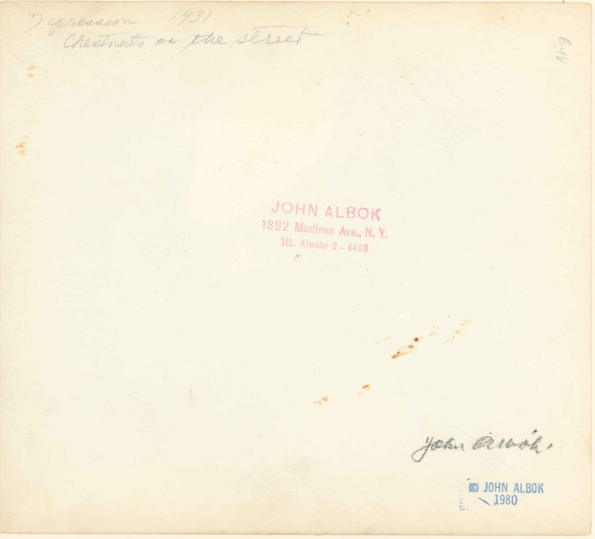 John Albok was a self-taught photographer and print maker whose prolific career spanned the years of the Depression through the recovery years of the Roosevelt administration. Albok’s mastery of photography was his ability to capture on film the character and feeling of a place, the essence of a moment, and the dignity and humility of a person no matter how impoverished or downtrodden. He is acknowledged as a preeminent chronicler of his time, and his work is found in the permanent collections of major museums worldwide.