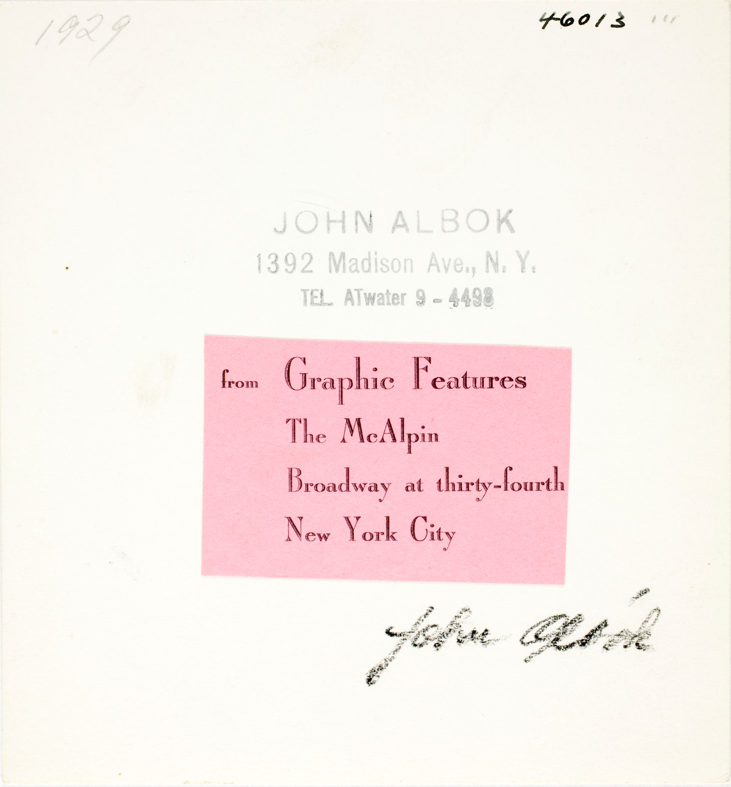Acquired directly from Artist’s daughter, executor of the Estate of John Albok.