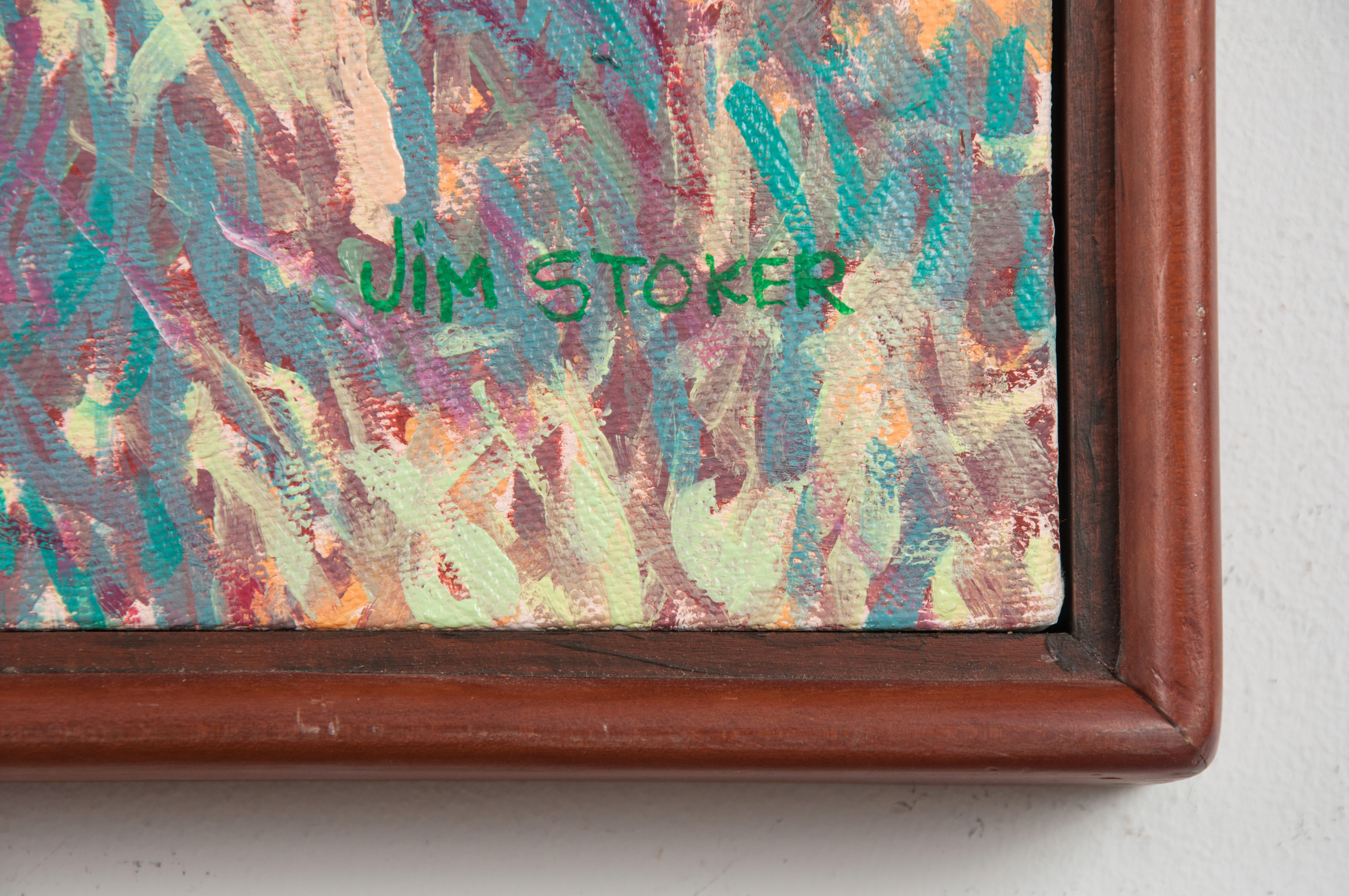 Jim Stoker was born in 1935, in Nash, Texas, and reared in Atlanta, a rural town in East Texas. He received a BFA in Applied Art from The University of Texas at Austin in 1957, and an MA in Painting, Drawing, and Printmaking from New Mexico Highlands University in 1962 where he studied with Elmer Schooley. Stoker painted throughout a teaching career which culminated in a 30-year tenure at Trinity University in San Antonio.
