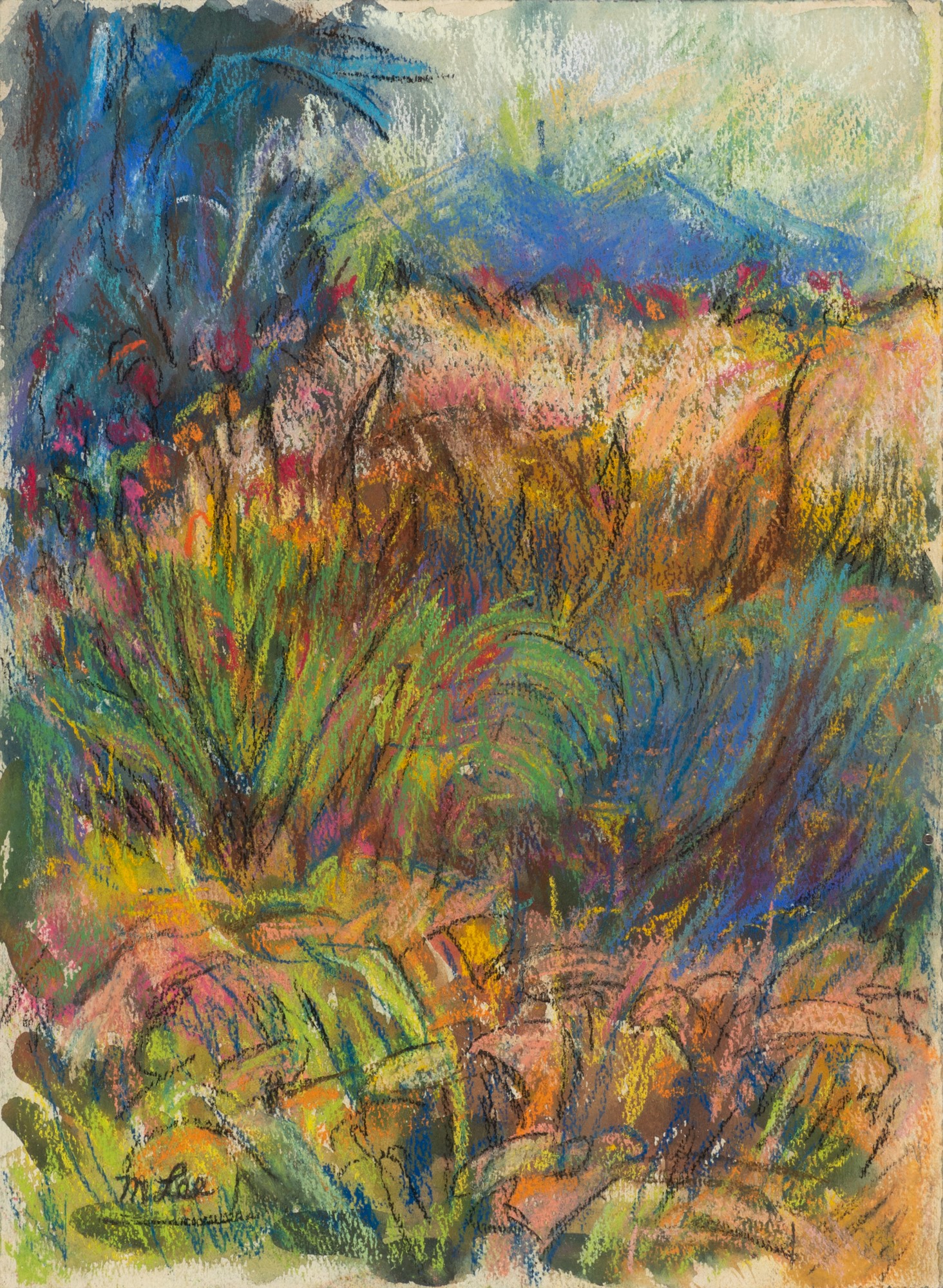 She continued the artistic life in NYC and in 1950, met and married an experimental film maker and educator named Francis Lee. Marjorie’s artwork documents their vacations and trips out of NYC over the next 14 years with works from Minnewaska, New Rochelle, Carmel, East Hampton, and Woodstock in NY, Colorado, Glacier Park in Montana, and New Jersey.