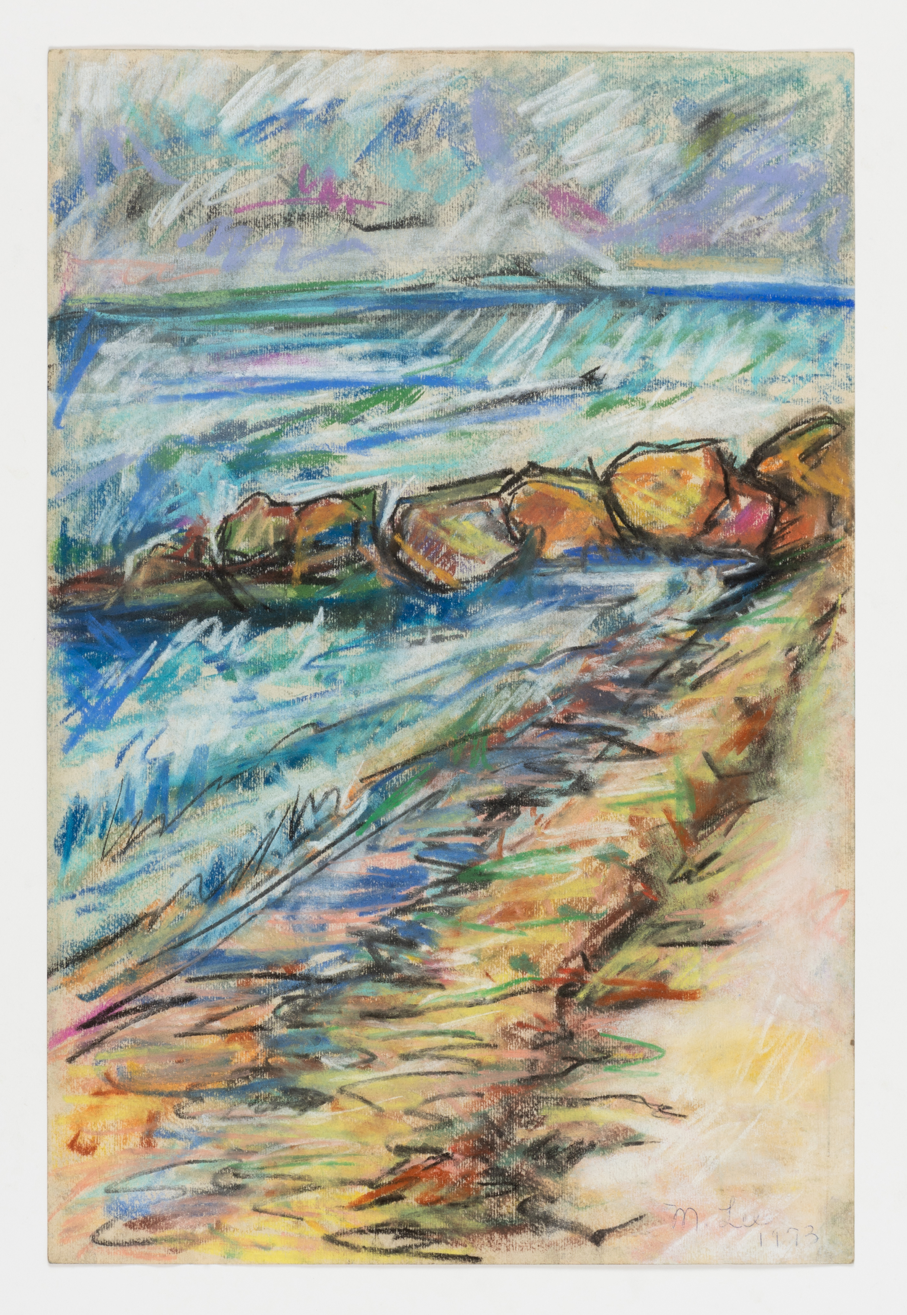 She continued the artistic life in NYC and in 1950, met and married an experimental film maker and educator named Francis Lee. Marjorie’s artwork documents their vacations and trips out of NYC over the next 14 years with works from Minnewaska, New Rochelle, Carmel, East Hampton, and Woodstock in NY, Colorado, Glacier Park in Montana, and New Jersey.