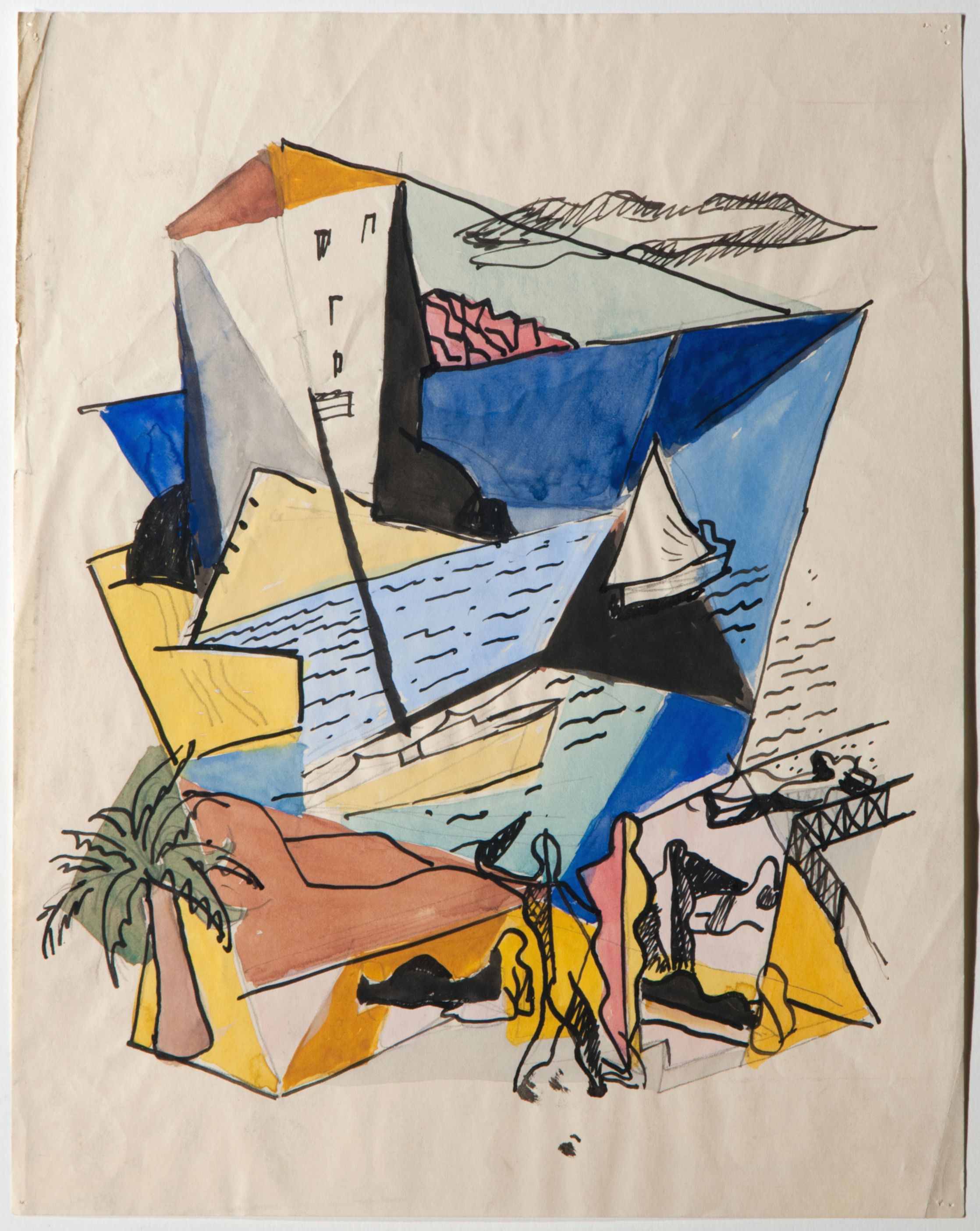 While the exact location of this work on paper is unknown, Kinzinger was the Director of Hans Hofmann School of Fine Arts in Munich from 1930-1933, while Hofmann was in the U.S. teaching. During this time, Kinzinger also taught in St. Tropez. From this timeline, we think it is likely that this work on paper was made in St. Tropez, France.
