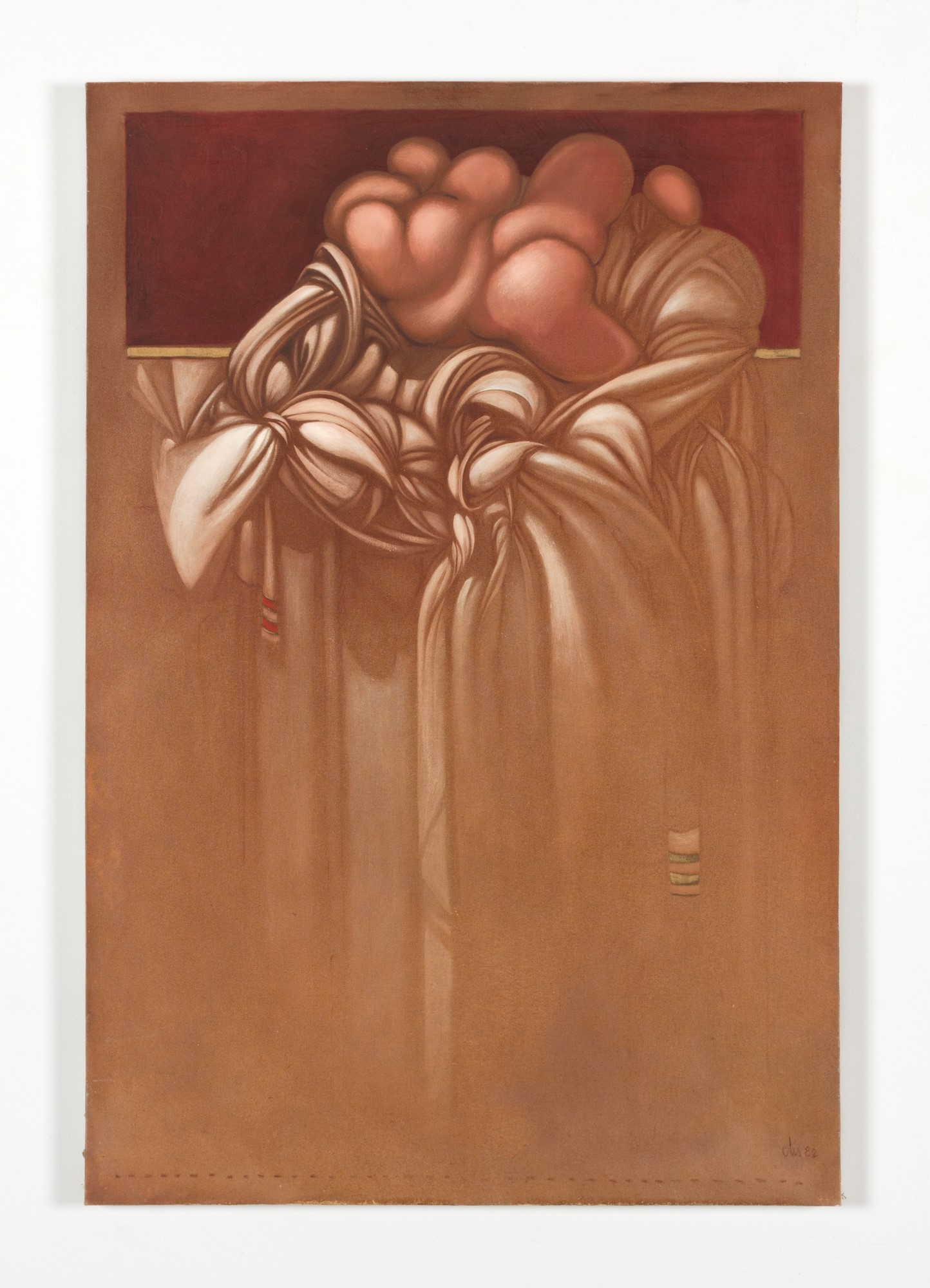 A painting is begun with no prior plans or ideas but rather to find out what will reveal itself once I am involved with it.