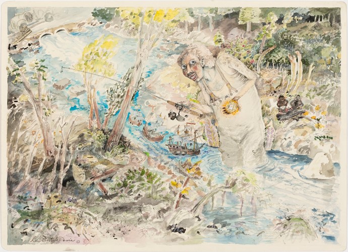 After receiving his master’s degree from Cranbrook Academy, Lee Baster Davis went on to teach printmaking and drawing at East Texas State University in Commerce Texas for over 30 years. Now retired from teaching, he is in his studio most every day, continuing to create the meticulously crafted, highly detailed, visionary narrative drawings and collages in ink and watercolor that he is best known for.