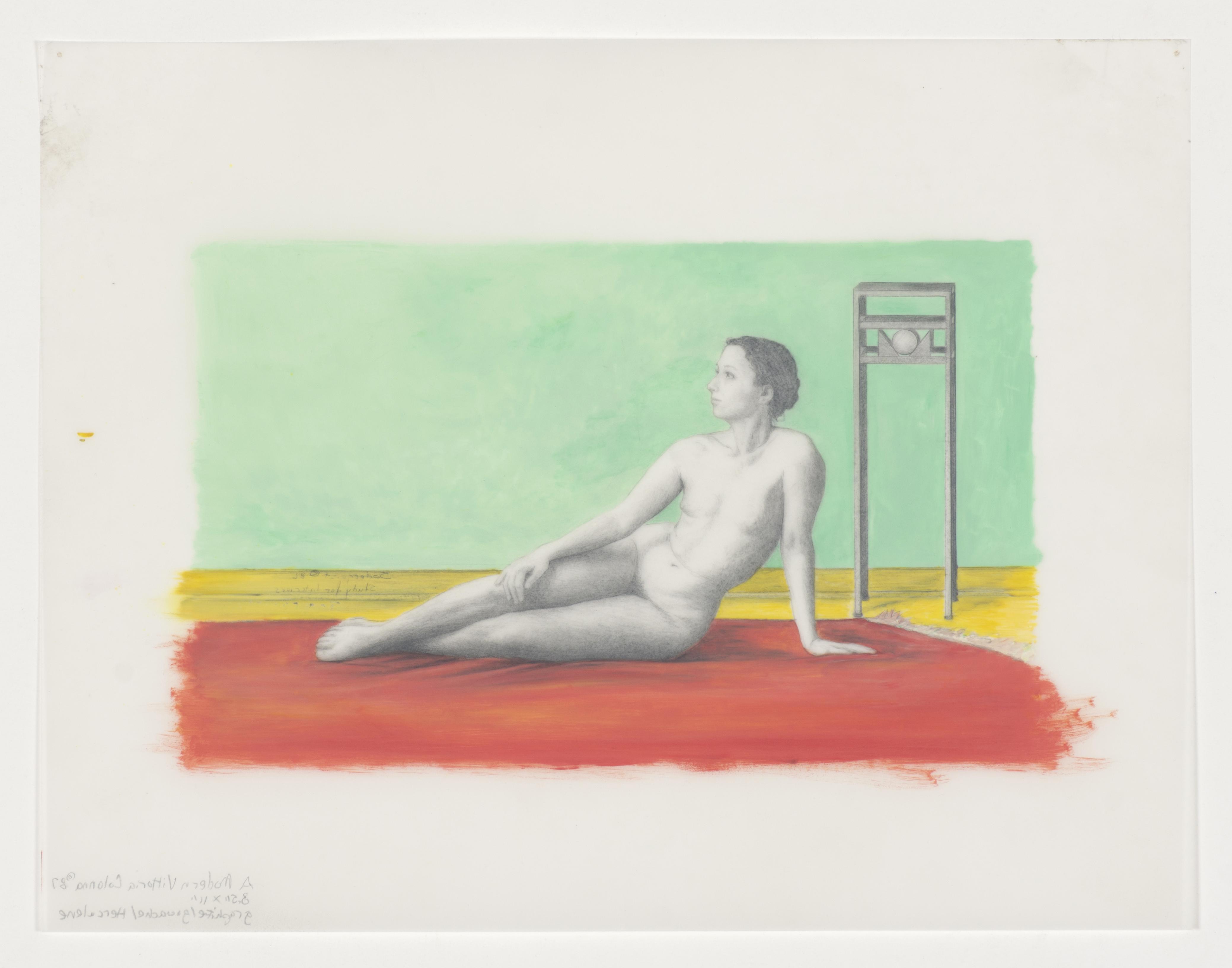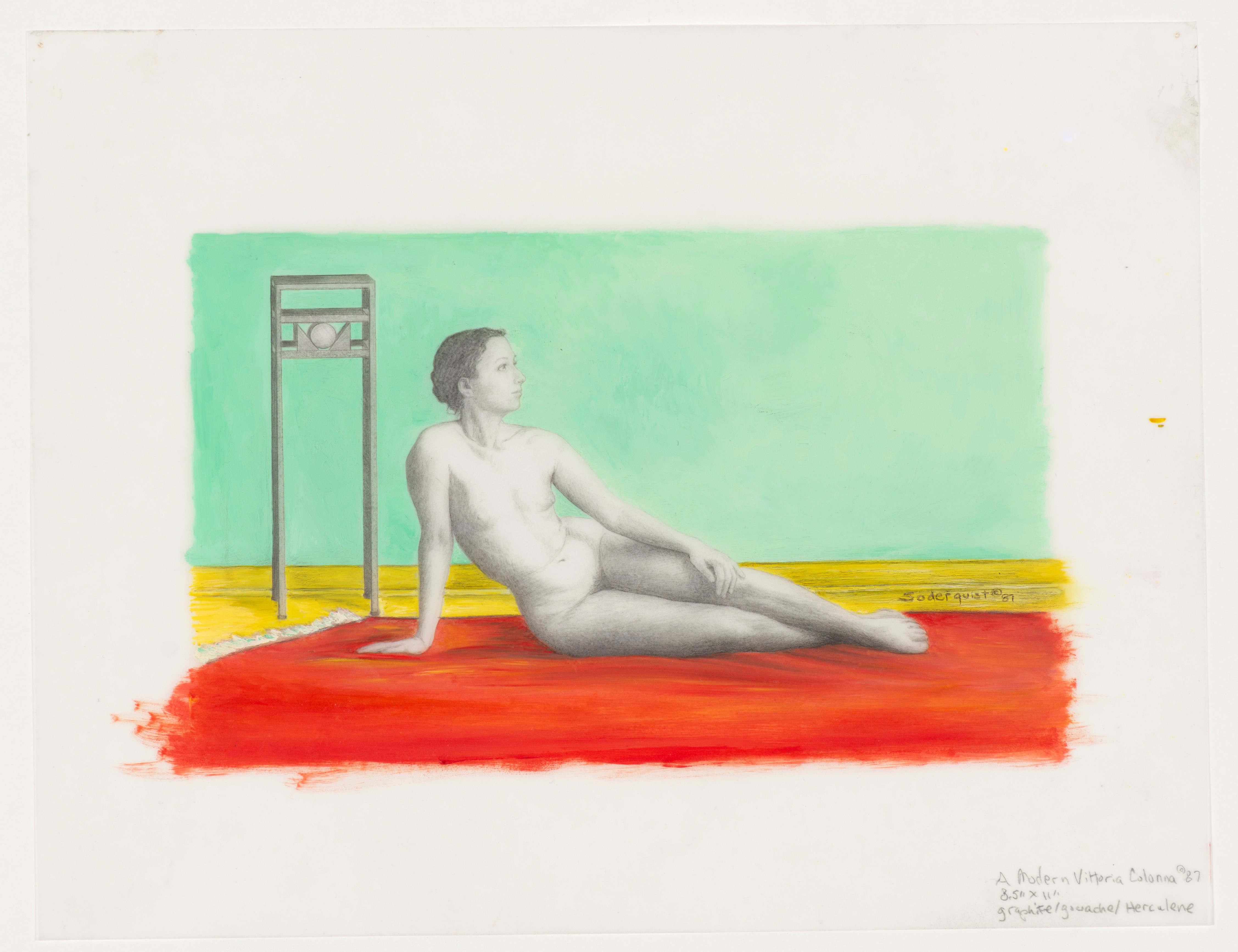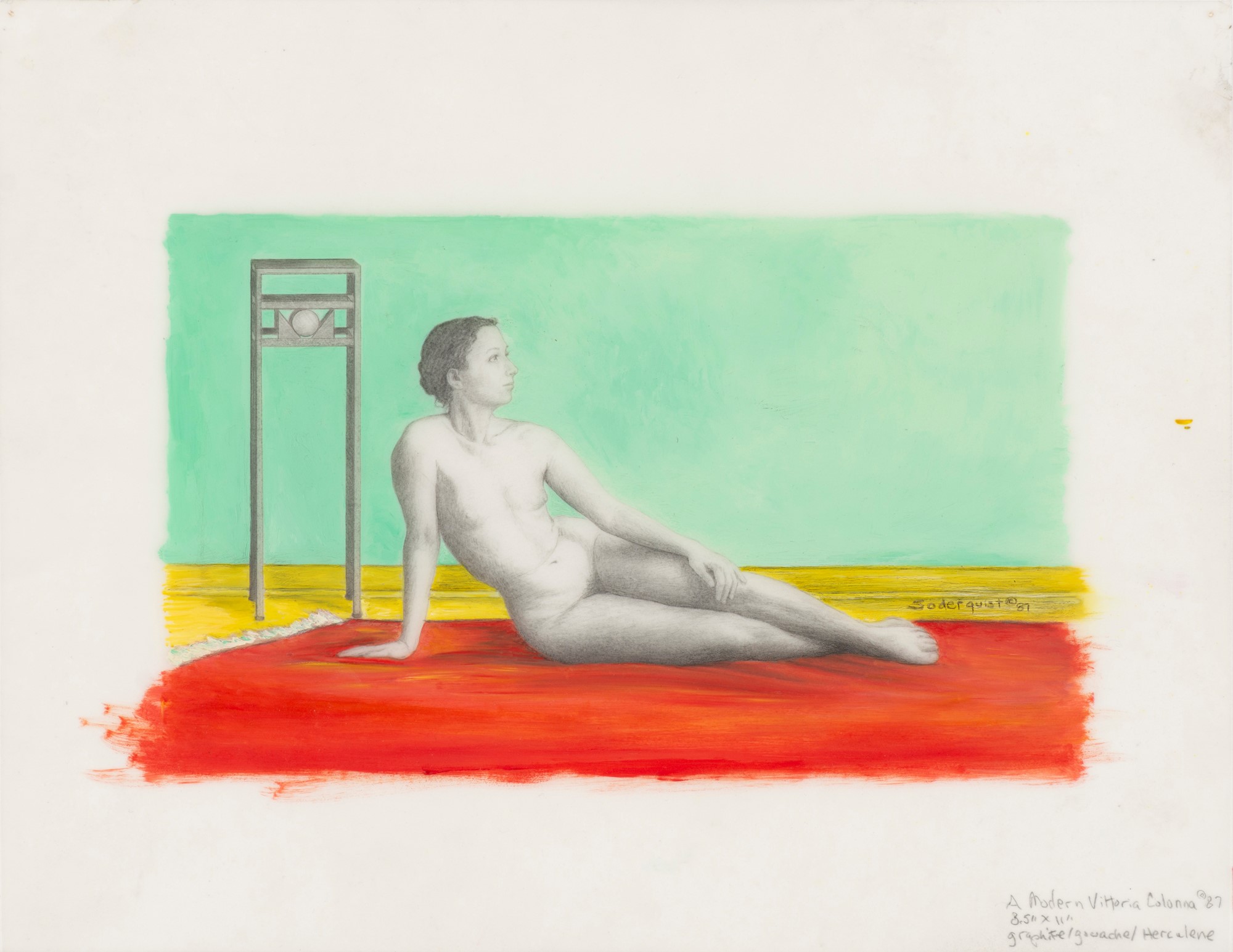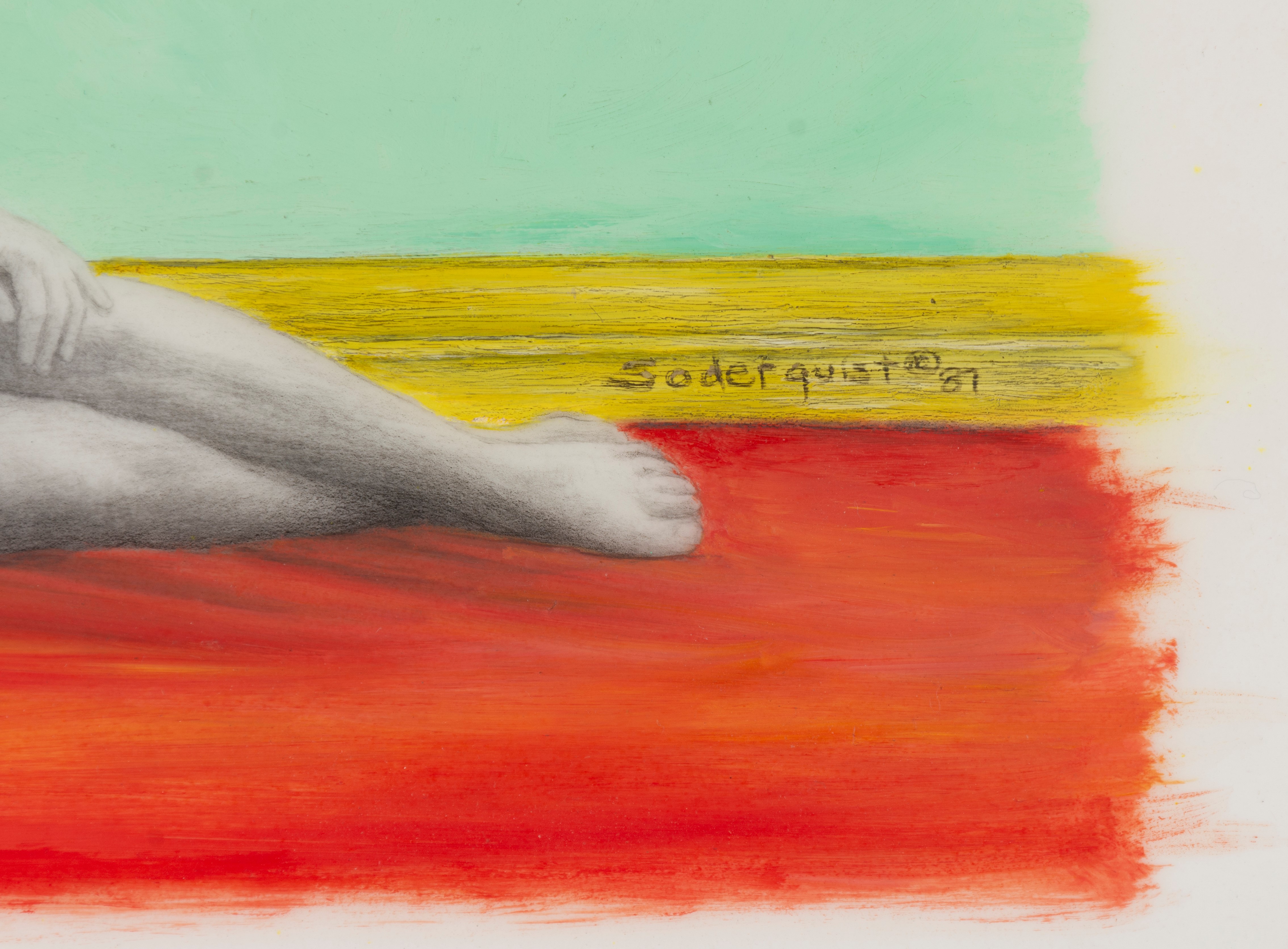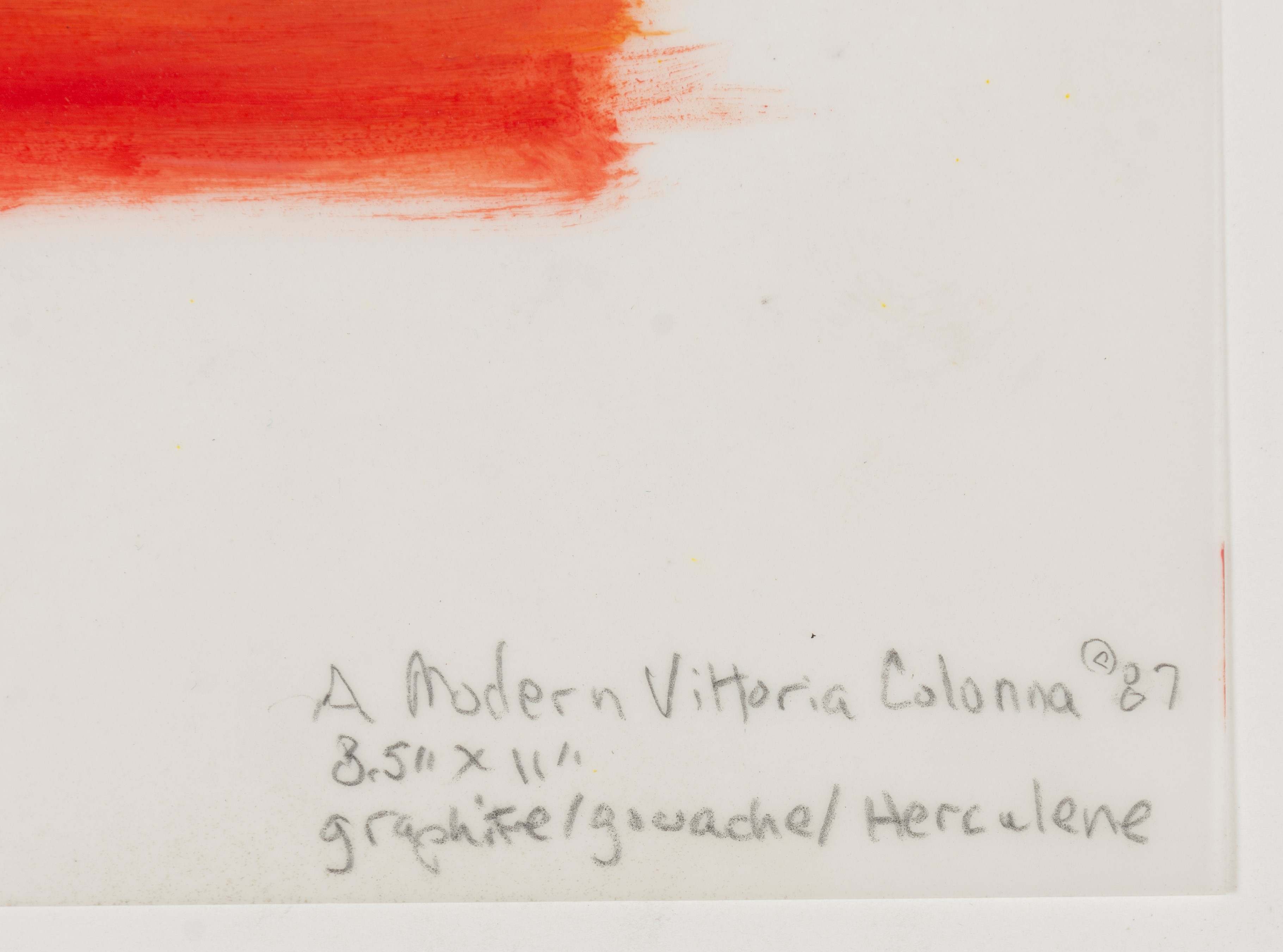 This drawing is from the “Vittoria Colonna” series executed by Soderquist in and around 1982. Vittoria Colonna is a Renaissance Italian poet who was known, not only for her poetry, but for her personality and the famous people with which she associated at the time, including Michelangelo to whom she was a muse.