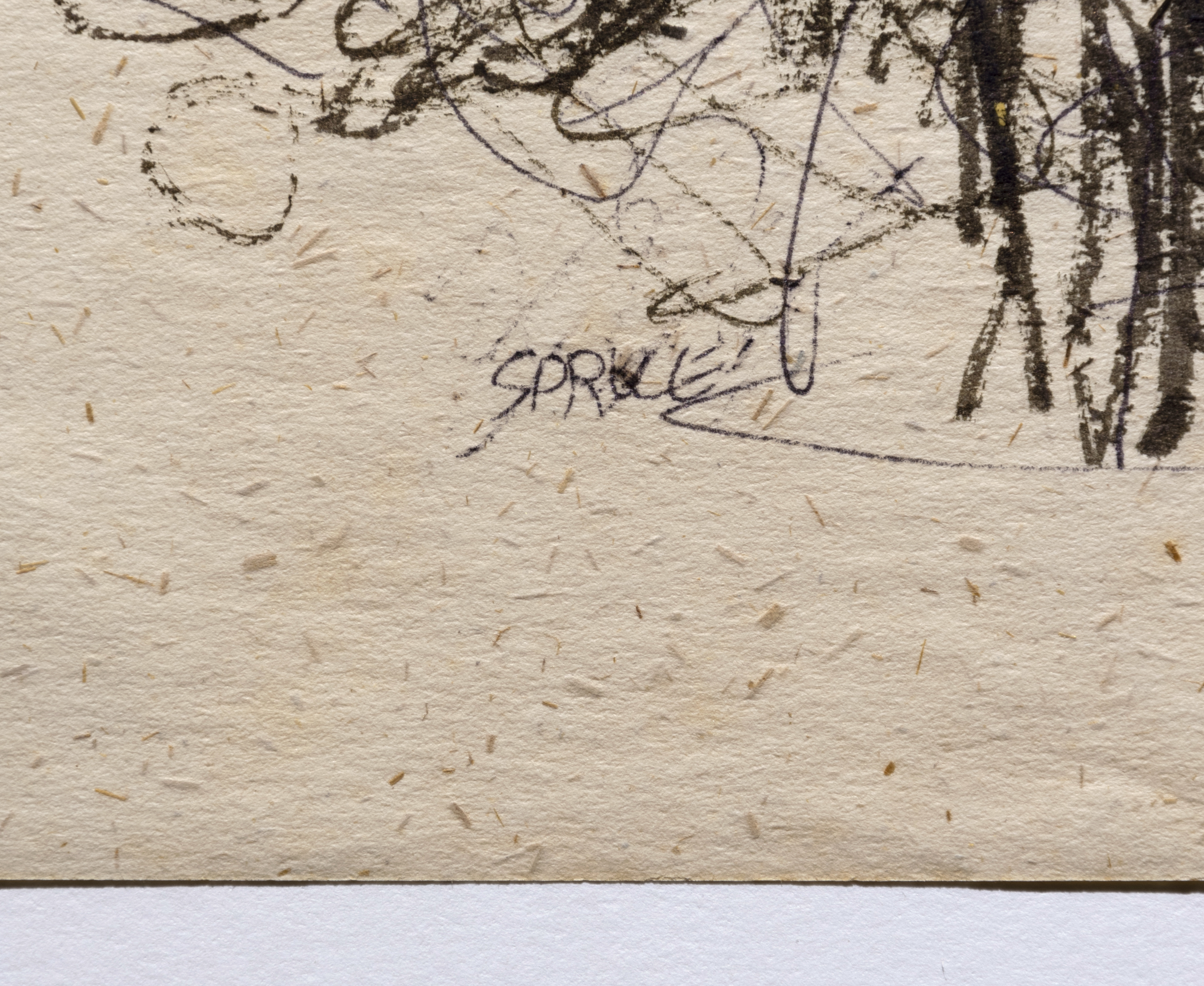 Because Everett Spruce memorized the landscapes he intended to eventually paint, he did not often use drawing as a memory tool. Most of his drawings were used to work out compositional ideas. Unlike many of Spruce's landscape paintings that focus on the vista and the enormity of the Texas landscape, his drawings are more focused on the details. All of these drawings show his interest in the land, or humans interacting with it.
