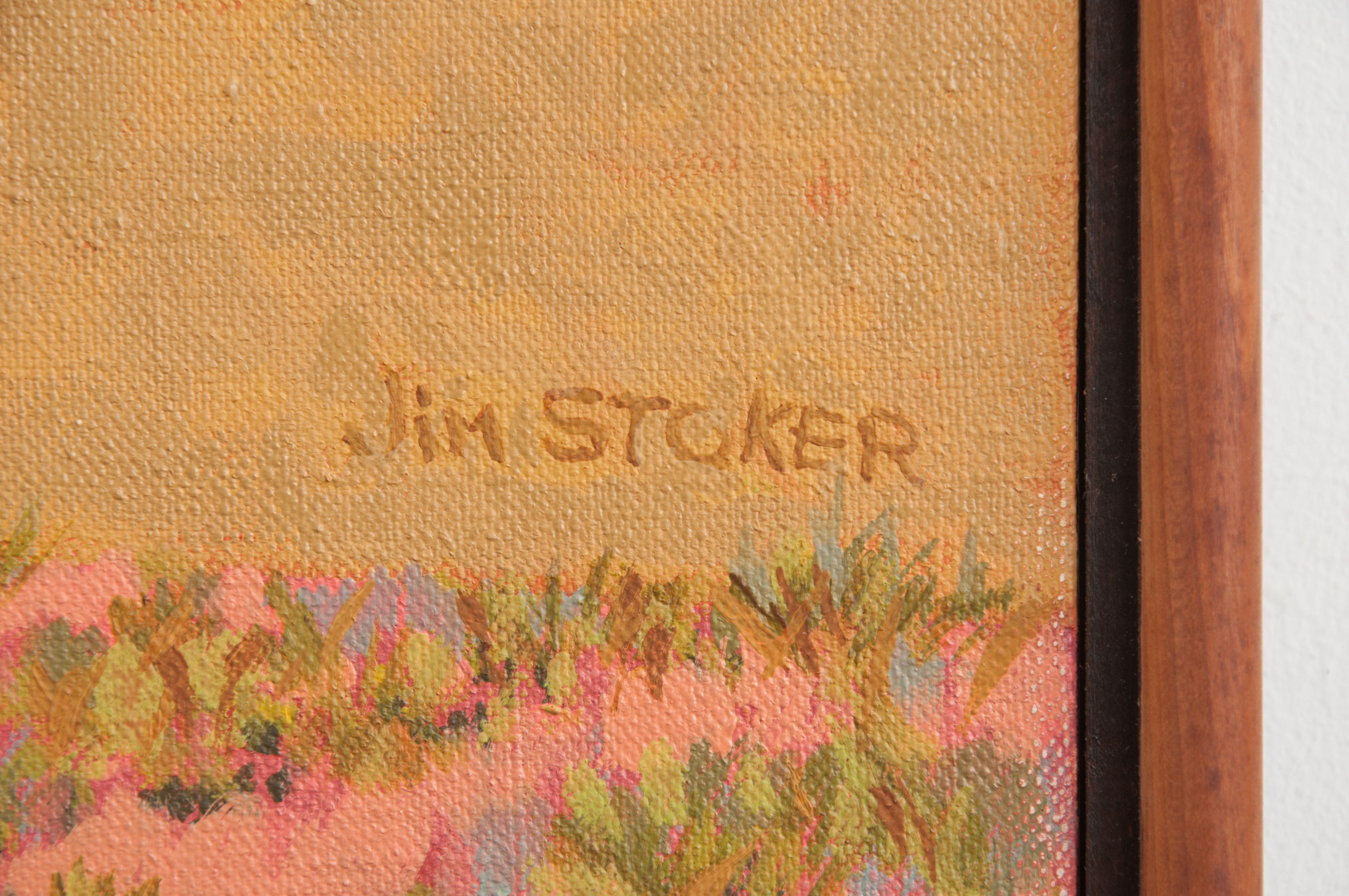 Jim Stoker was born in 1935, in Nash, Texas, and reared in Atlanta, a rural town in East Texas. He received a BFA in Applied Art from The University of Texas at Austin in 1957, and an MA in Painting, Drawing, and Printmaking from New Mexico Highlands University in 1962 where he studied with Elmer Schooley. Stoker painted throughout a teaching career which culminated in a 30-year tenure at Trinity University in San Antonio.
