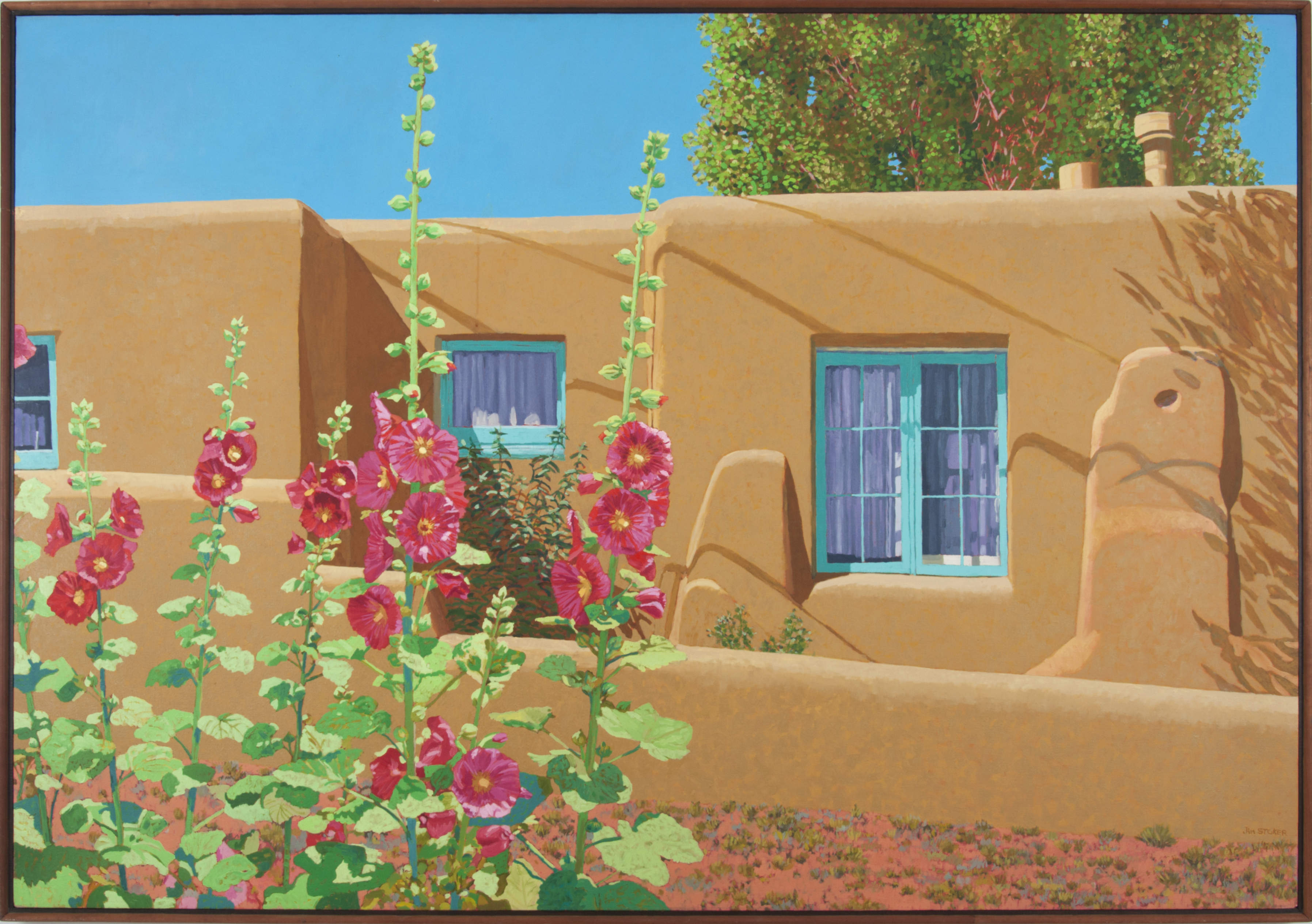 Nature has always been important to Stoker, as evidenced by the efforts made by him and his wife, Eloise, to help form the San Antonio, Texas chapter of the Sierra Club. From the early 1980’s on, Stoker's subjects relate to the flora and fauna of the outdoors, and, often, how each coexist with humans, i.e. in this painting, the house is a backdrop for the flowers. During this period, Stoker's work moved away from abstraction and became more representational in style.