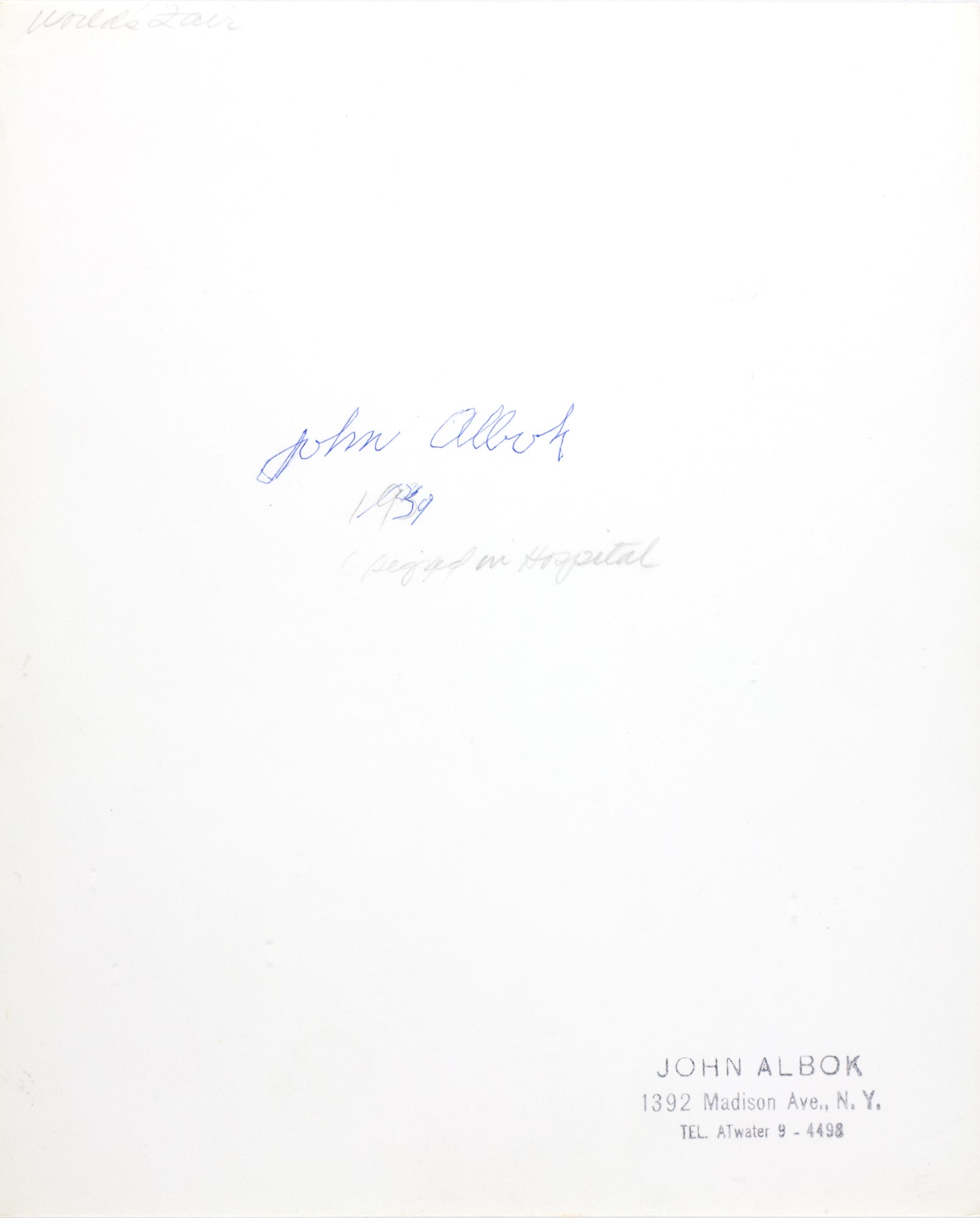 Pencil notation on verso reads "Signed in hospital".