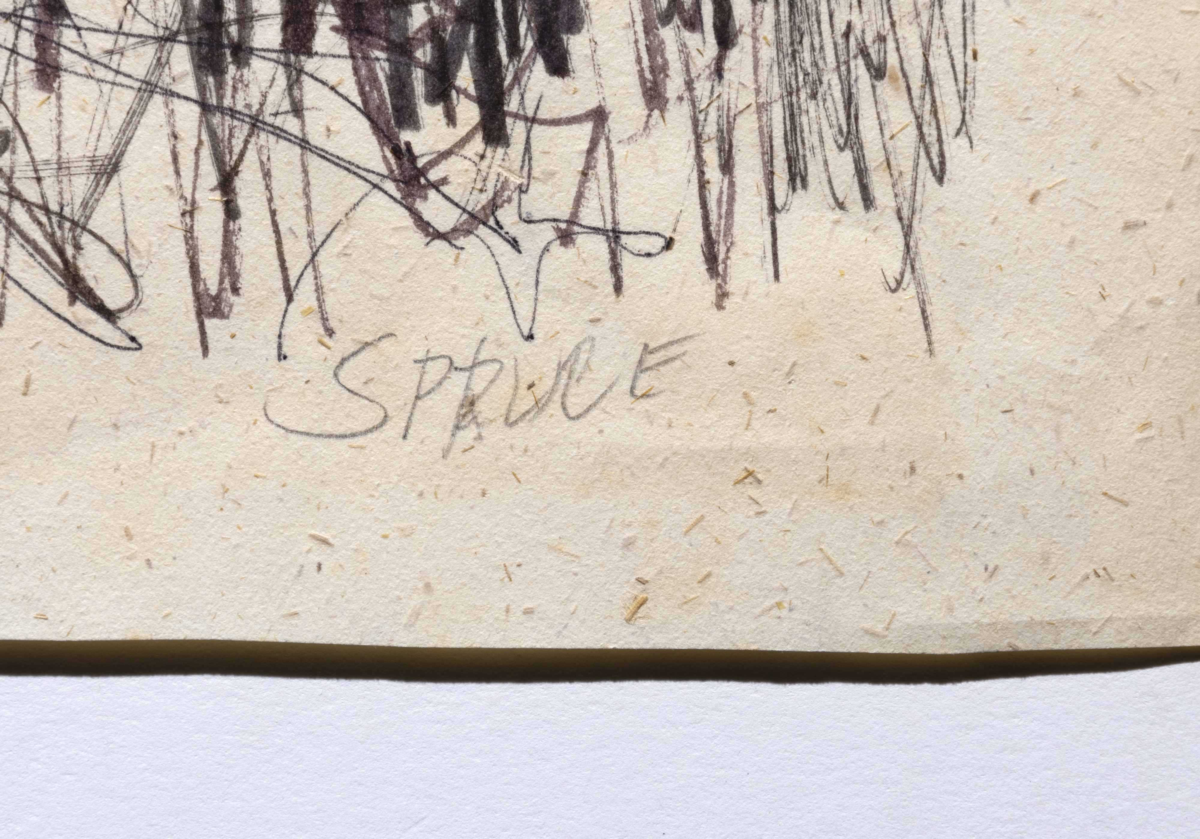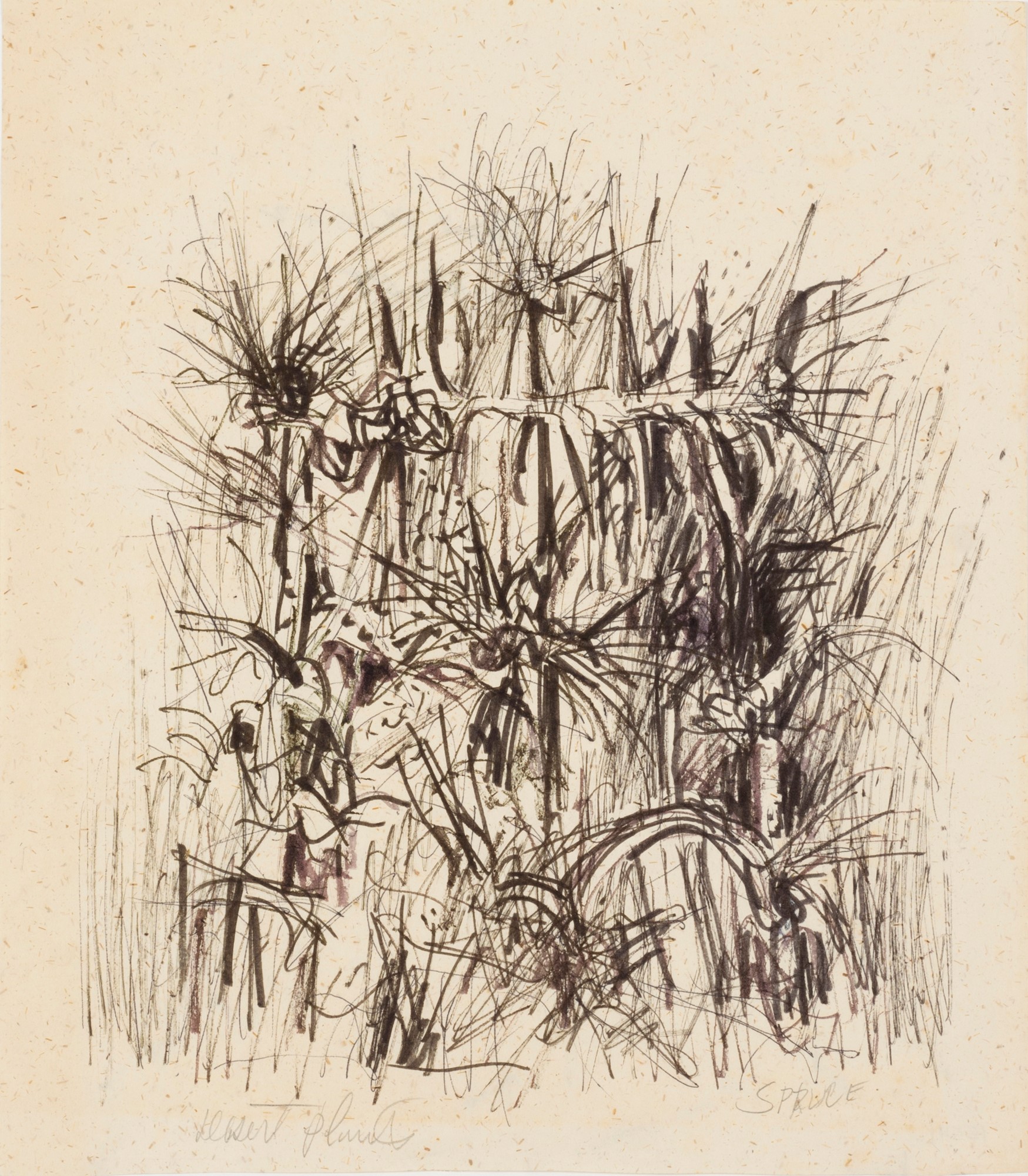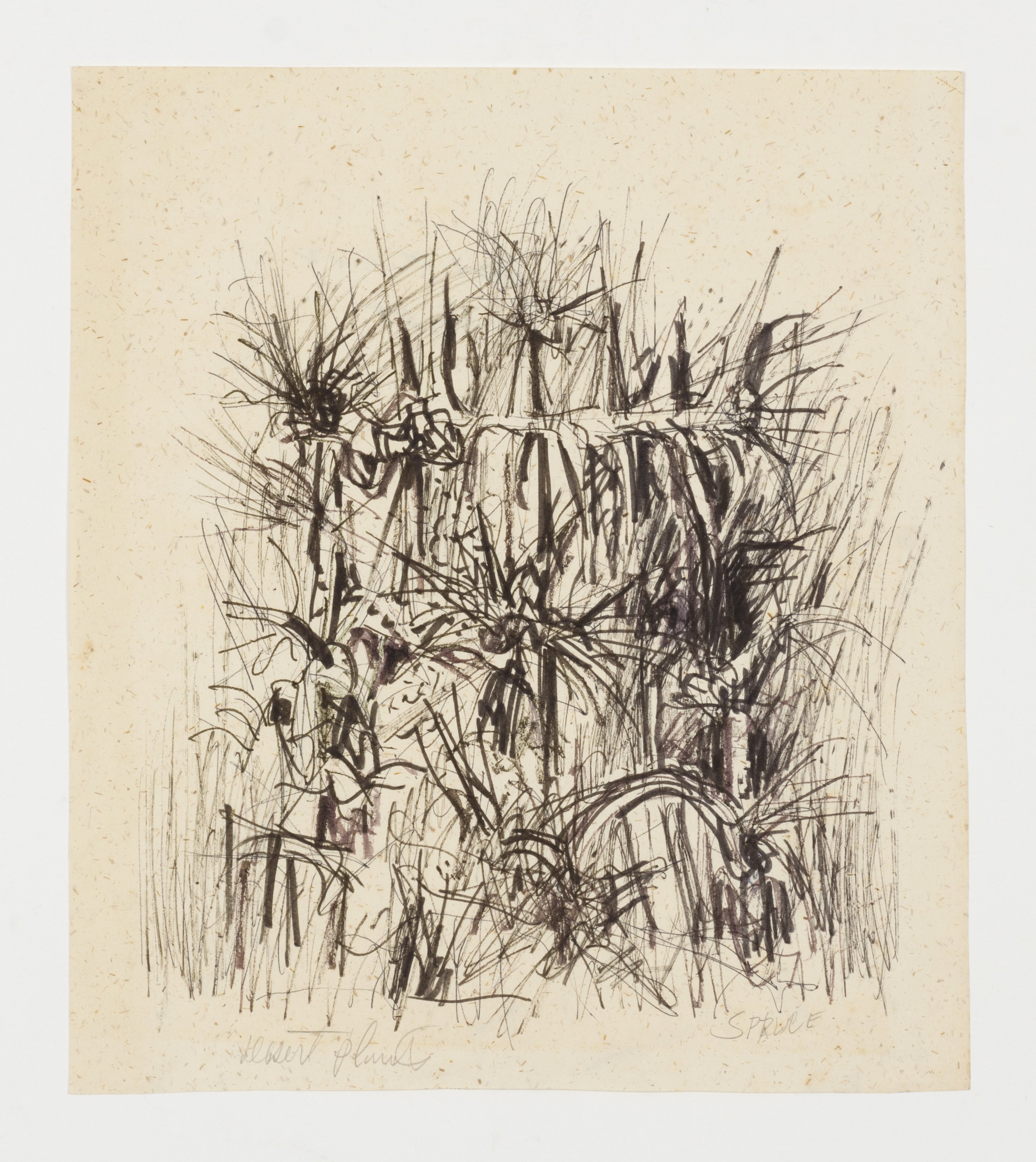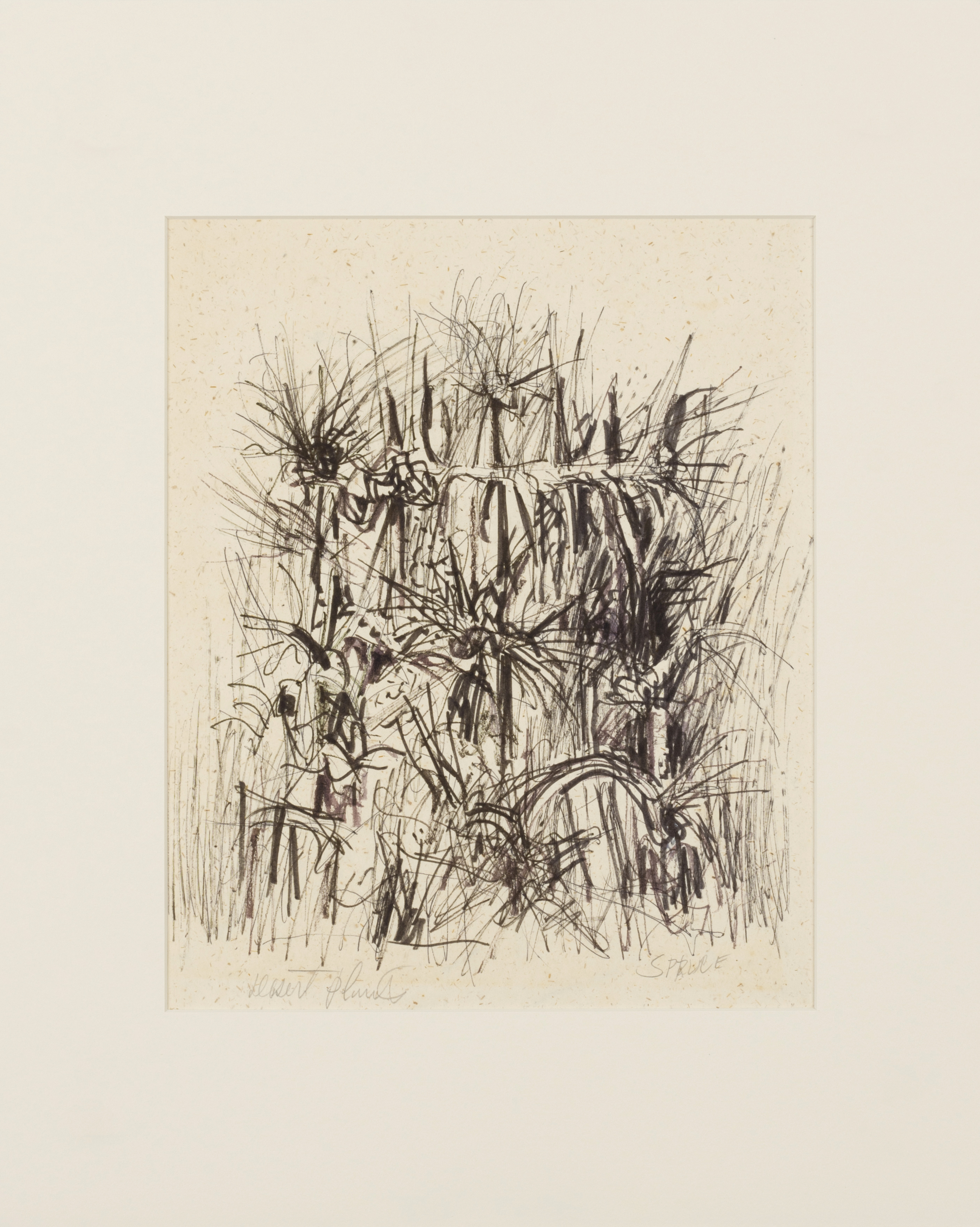 Because Everett Spruce memorized the landscapes he intended to eventually paint, he did not often use drawing as a memory tool. Most of his drawings were used to work out compositional ideas. Unlike many of Spruce's landscape paintings that focus on the vista and the enormity of the Texas landscape, his drawings are more focused on the details. All of these drawings show his interest in the land, or humans interacting with it.