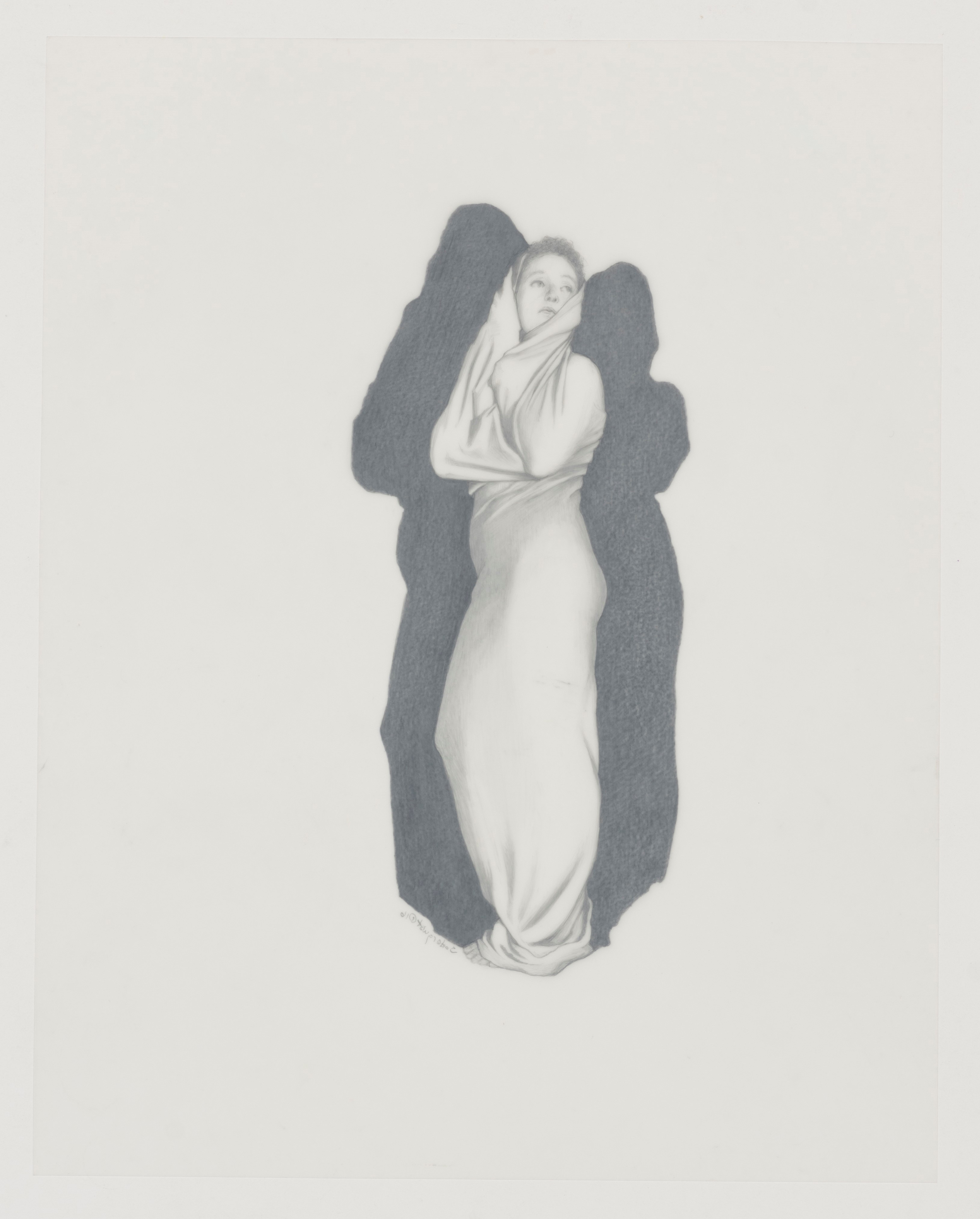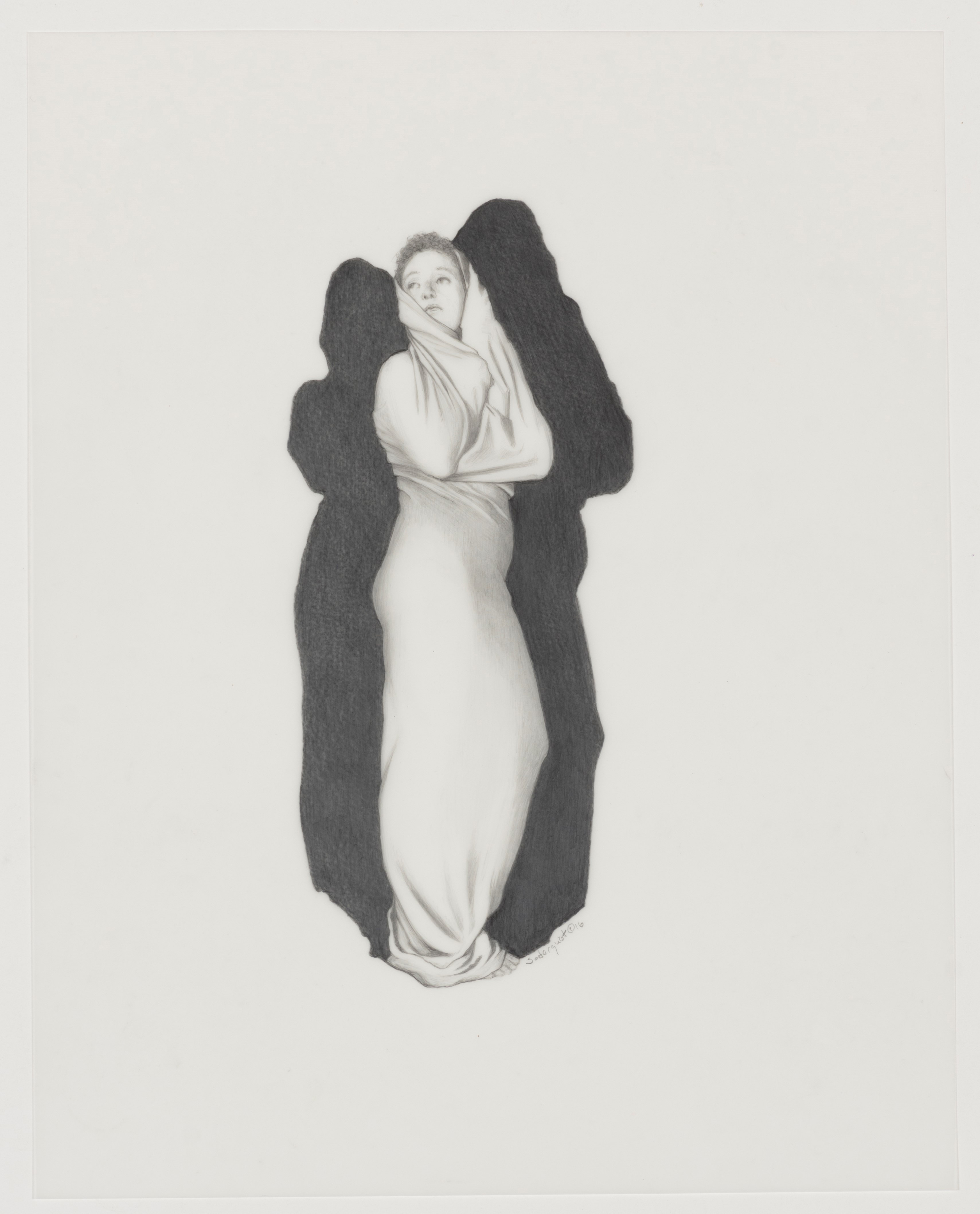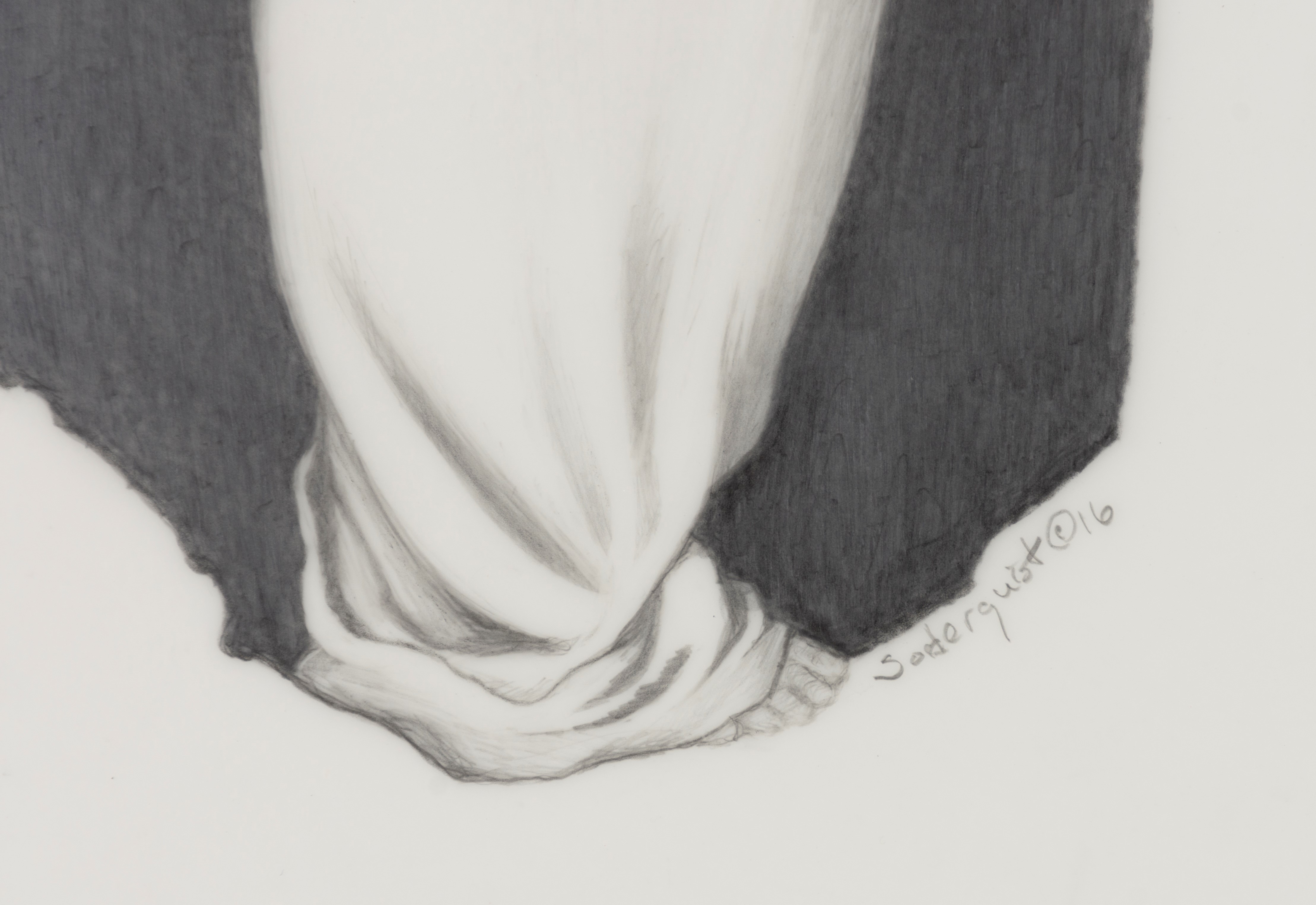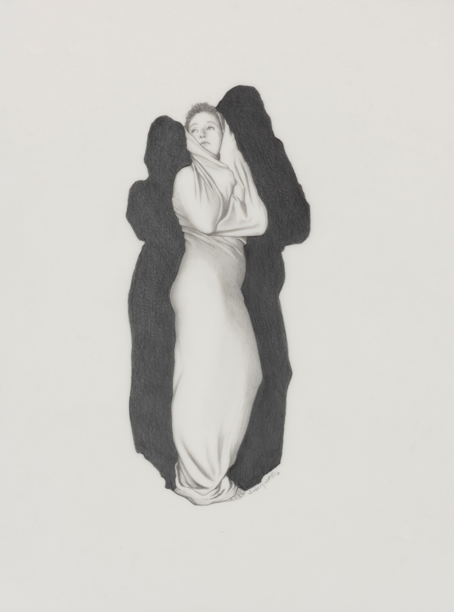"The Rapt Shadow series was executed in 2015/16 and is a play on the words: wrapped and rapture. The series began when I became intrigued by the interplay between the draped figure and shadows. Drawings in this series depict my models wrapped in fabric and in poses that exude a state of rapture. The shadows are shadows in name only. They are manipulated to reflect a sense of being deeply engrossed with the figure, reiterating a state of being rapt.