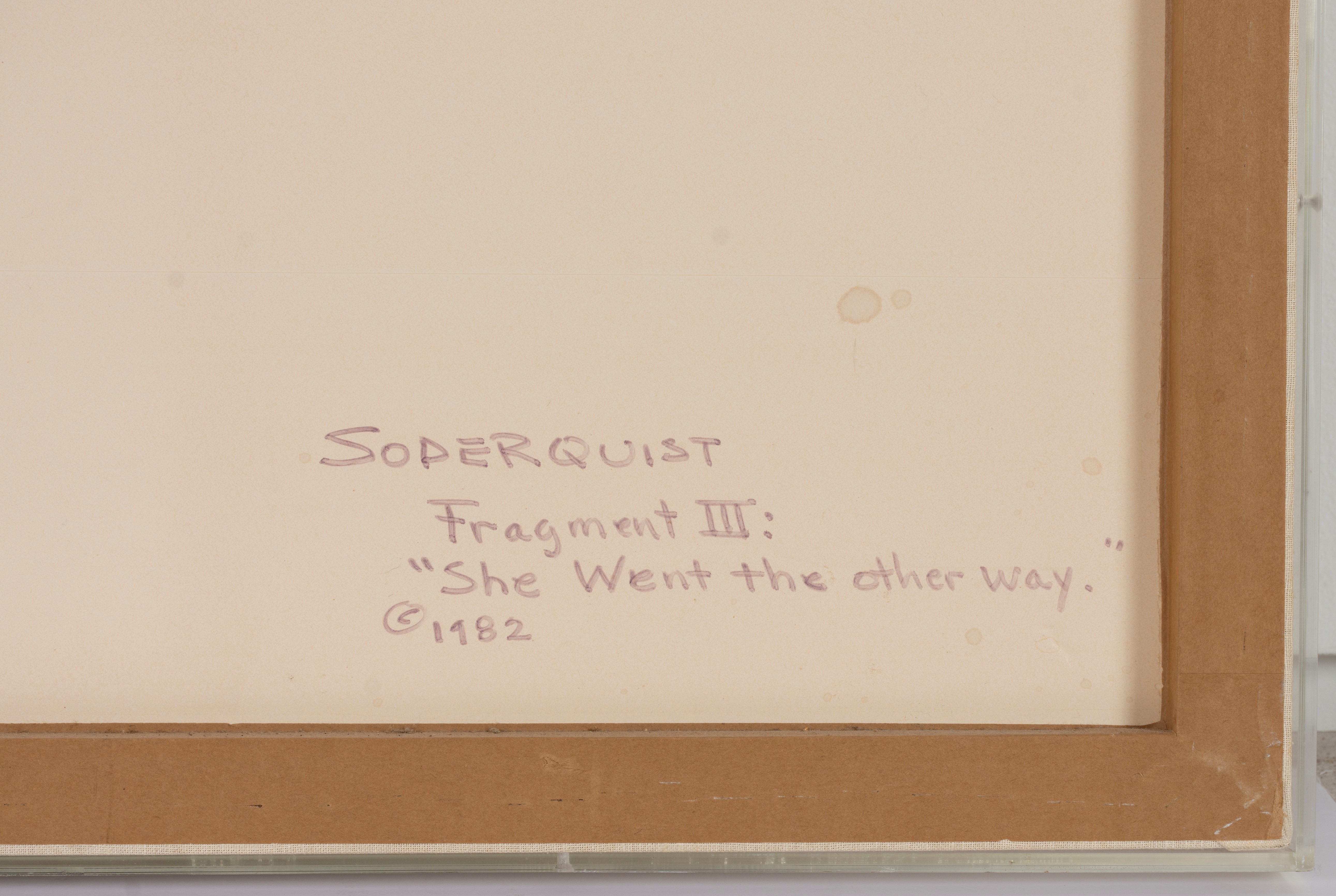 This is from a series of large drawings of the nude figure, executed by Soderquist in 1982, called “Fragments.” These drawings focused on details rather than encompassing the entire figure.
