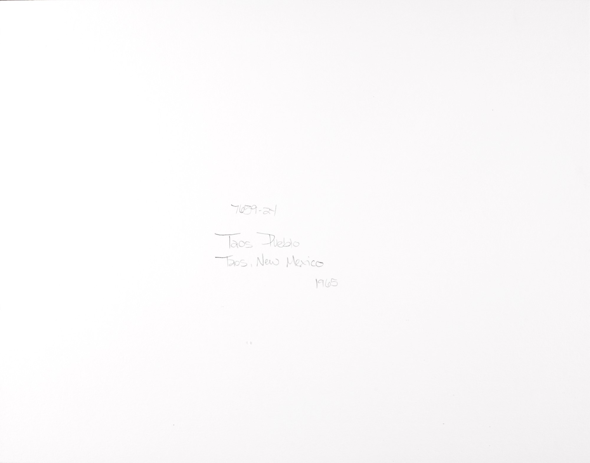 Myron Wood's Taos Pueblo portfolio spans the years 1961 to 1971. It includes portraits, daily activities, views of the pueblo and surrounding landscapes and scenes of public dances. A book entitled "Hollering Sun" (Simon and Schuster, 1972) was produced from this body of work.