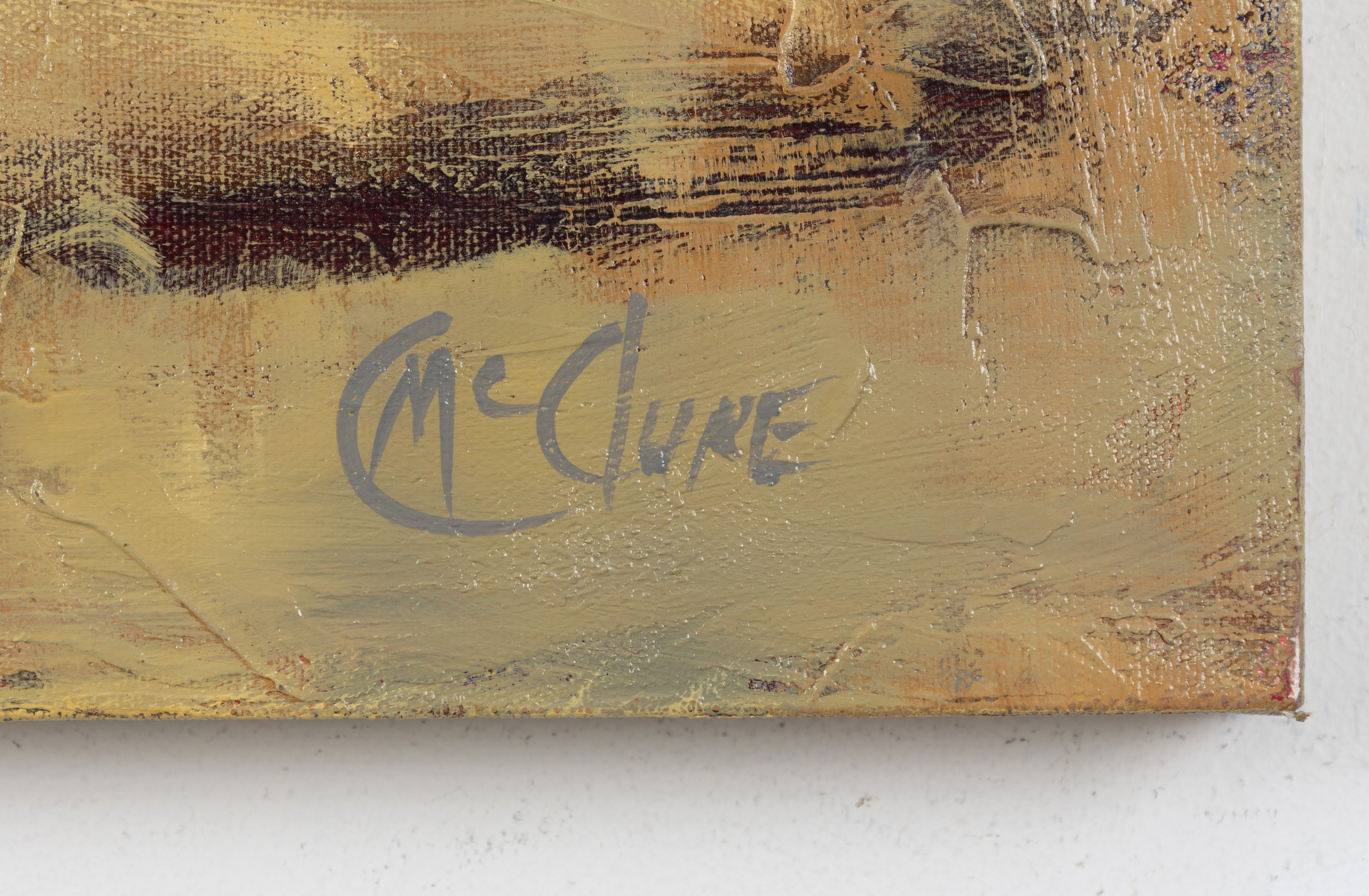 Cheryl D. McClure primarily paints intuitive abstract landscape paintings. The shapes and tonal range of her palette are inspired by the East Texas landscape and her travels abroad. She works primarily in acrylic and will occasionally add collage elements into her work.