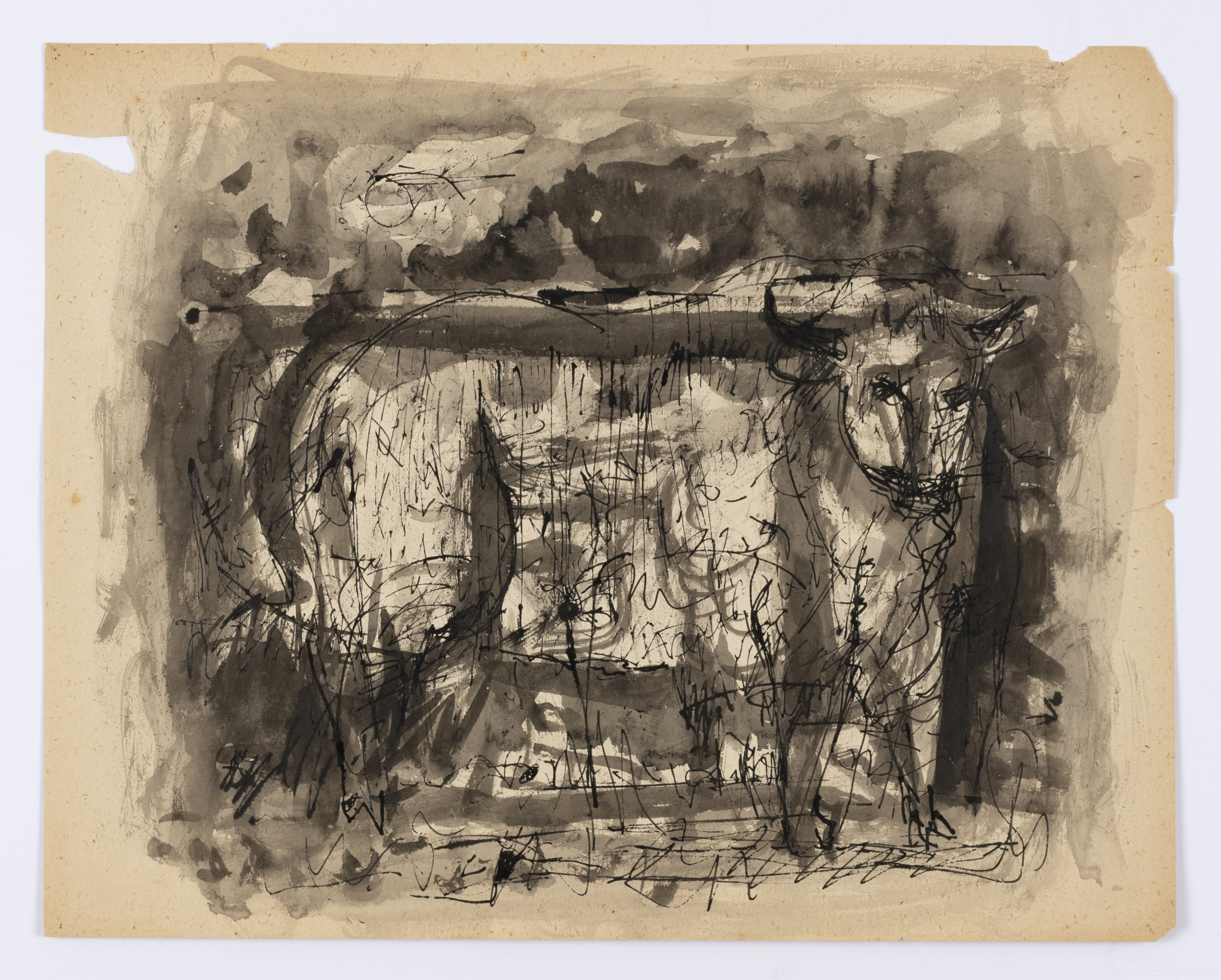 Because Everett Spruce memorized the landscapes he intended to eventually paint, he did not often use drawing as a memory tool. Most of his drawings were used to work out compositional ideas. Unlike many of Spruce's landscape paintings that focus on the vista and the enormity of the Texas landscape, his drawings are more focused on the details. All of these drawings show his interest in the land, or humans interacting with it.