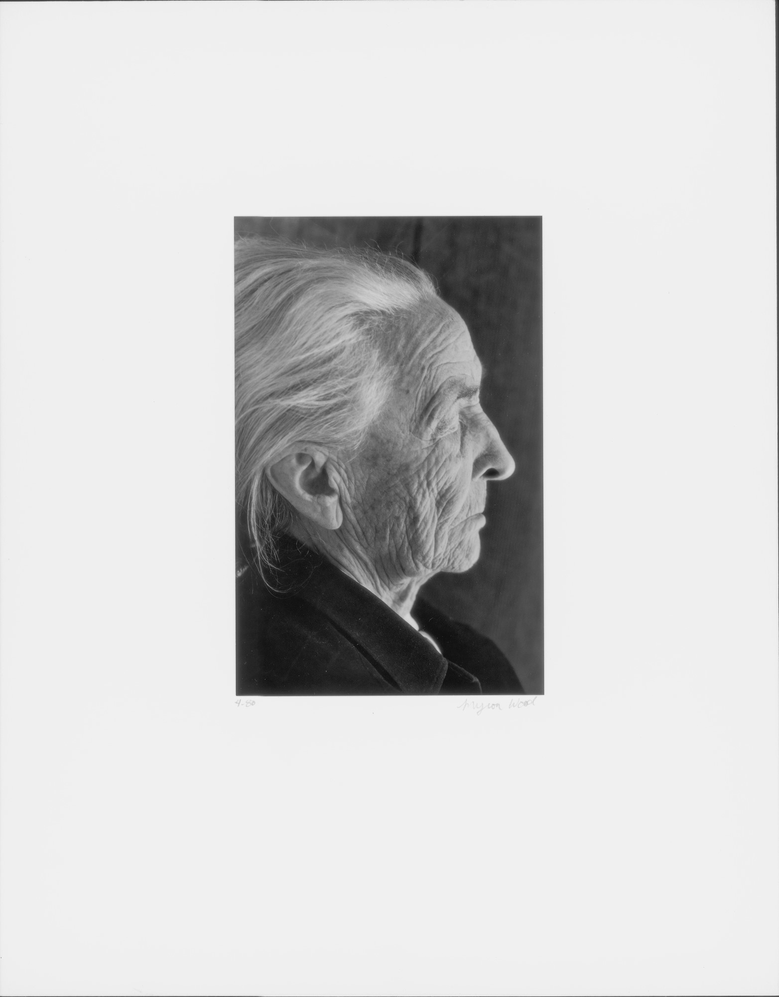 While primarily documenting her homes in Abiquiu and Ghost Ranch, New Mexico from 1979 to 1981, this is one of the rare portraits of Georgia O’Keeffe that Myron Wood made during that project. Forty eight images were published 15-years later in the book, "O'Keeffe At Abiquiu", Harry N. Abrams publisher, 1995.