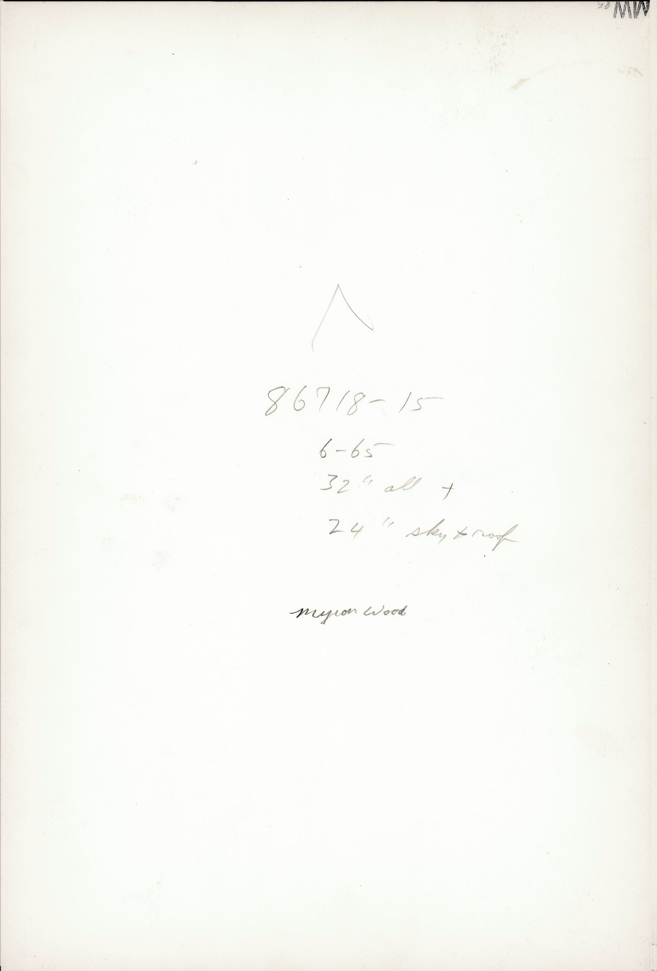 In 1991, Myron Wood selected 1000 prints from his life work for his personal use, and the remaining collection of his prints, negatives, and papers were to be donated upon his death to the Pikes Peak Library District, Colorado Springs, CO. The stamp on verso of print reads 'MW85', indicating that this was Myron Wood's 85th selection.
