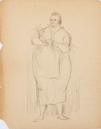 Because Everett Spruce memorized the landscapes he intended to eventually paint, he did not often use drawing as a memory tool. Most of his drawings were used to work out compositional ideas. Unlike many of Spruce's landscape paintings that focus on the vista and the enormity of the Texas landscape, his drawings are more focused on the details. All of these drawings show his interest in the land, or humans interacting with it.
