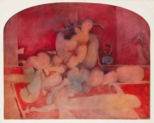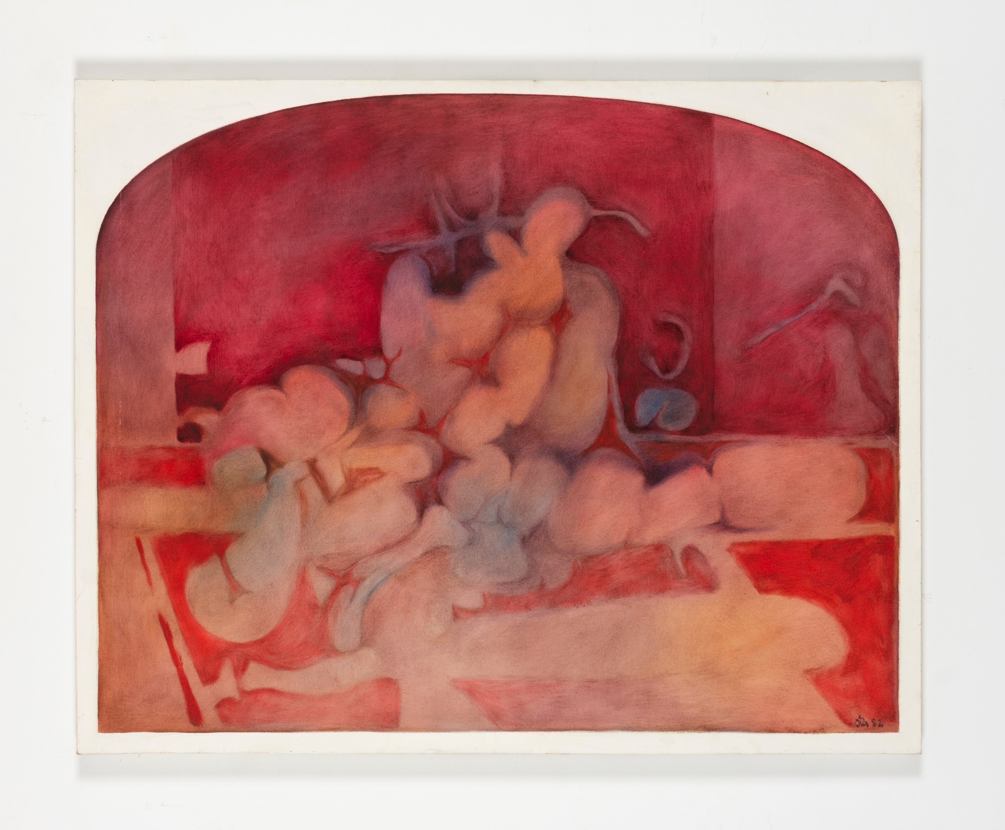 A painting is begun with no prior plans or ideas but rather to find out what will reveal itself once I am involved with it.