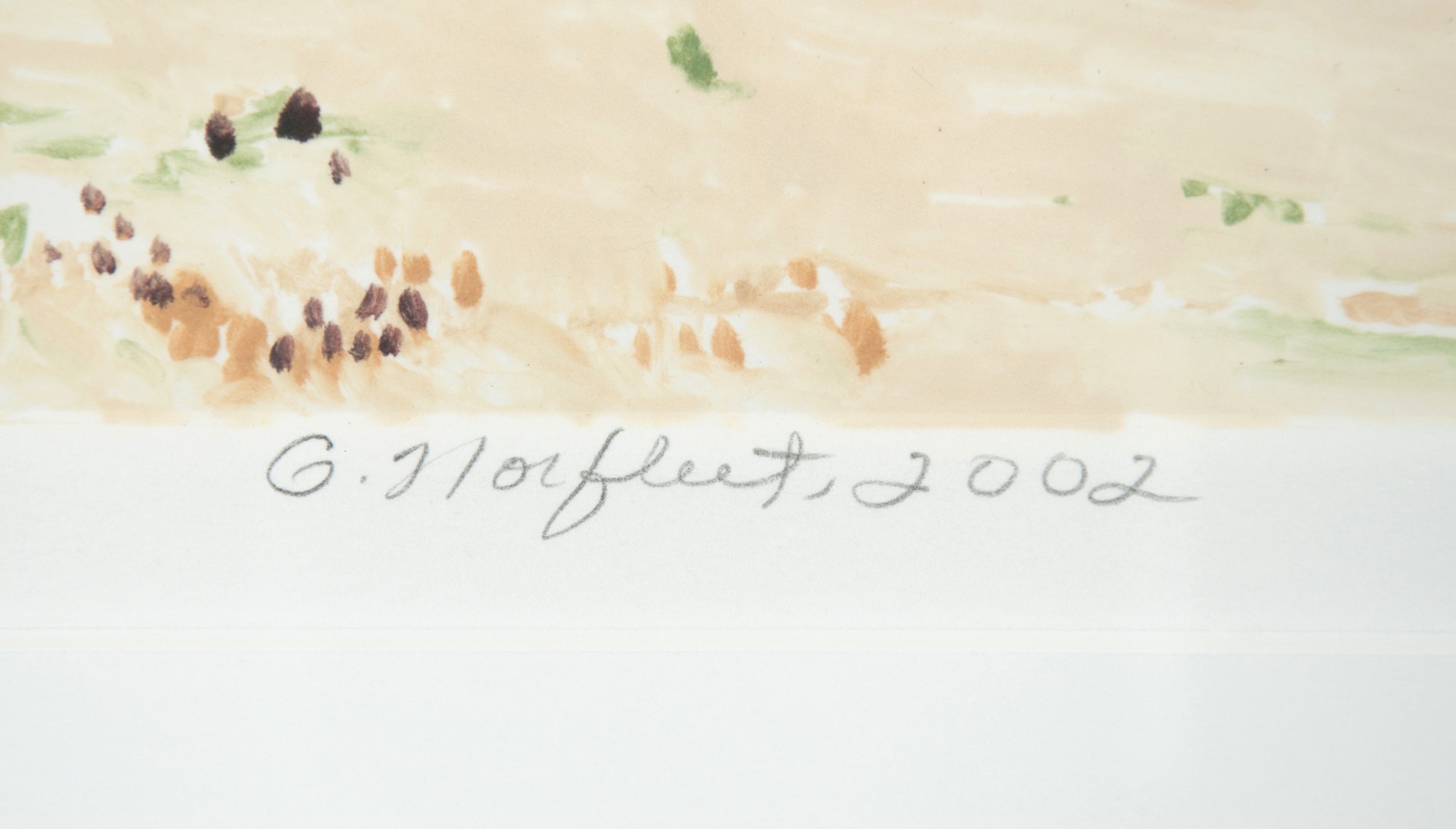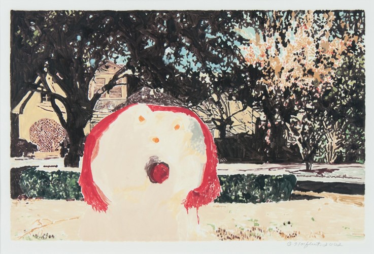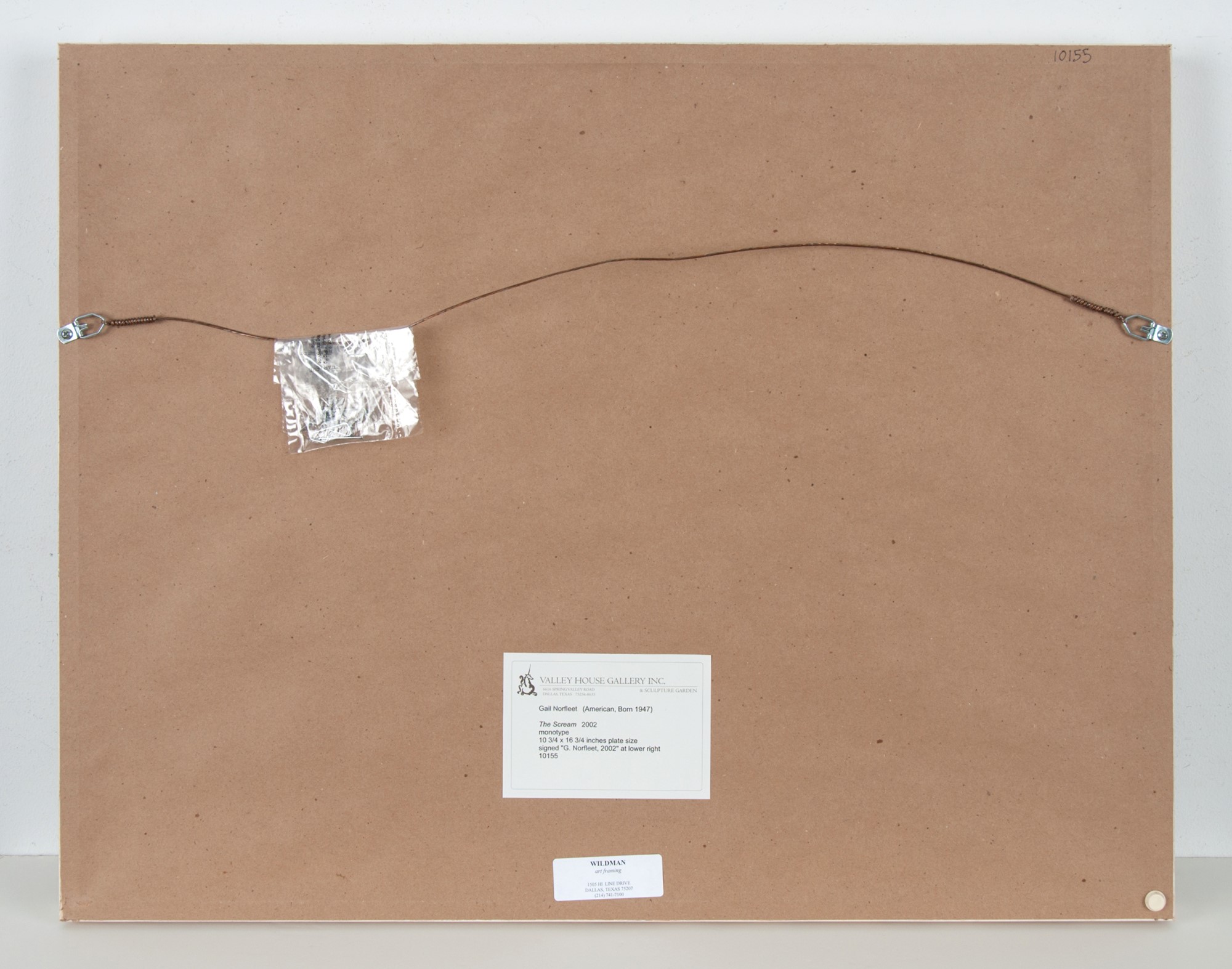 "Stylistically the work combines the flat perspective of Japanese printmaking, the charged energy of abstract expressionism and the nightmarish edge of surrealism. But it's typical Norfleet eccentricity - humor with undercurrents of horror, mundanity rendered elegant, naivete mixed with sophistication."