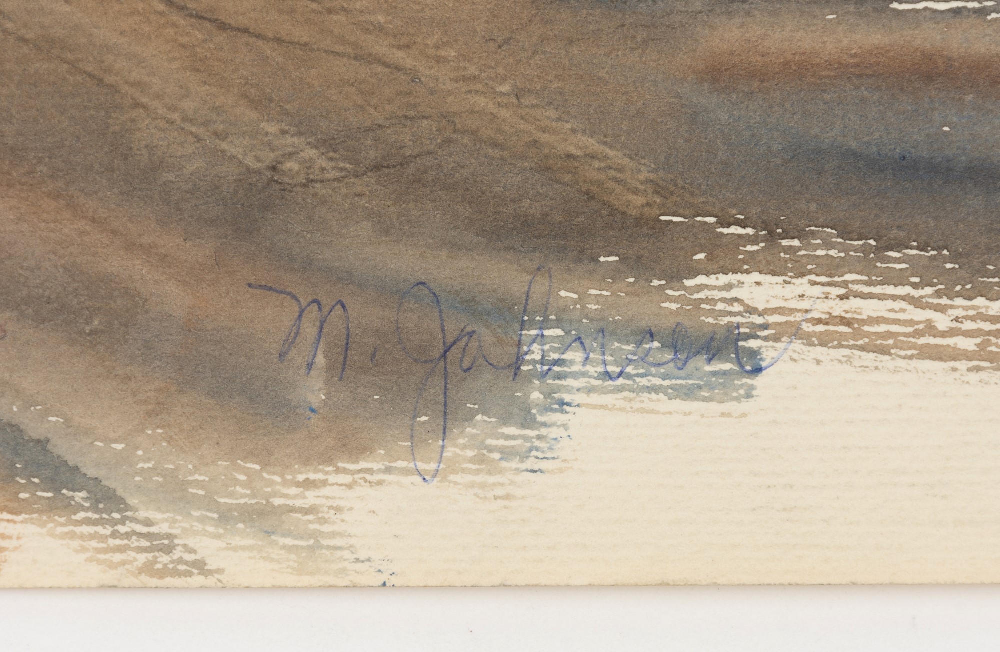 She vacationed on Martha’s Vineyard in 1950 and chose to capture her impressions of the island in pastel. She returned in 52, and this time chose watercolor, possibly more suited to the Island atmosphere.