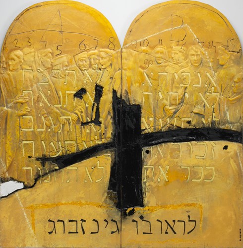 As with most of his work, Zapata often references historic themes or objects that carry historic reverence and he strives to bring these elements into a modern-day context and relevance. His working method is a balancing act of building up a surface and then tearing back into it, painting the surface and then scratching back through the paint to reveal lower layers, and he stops this process when he feels an equilibrium has been reached.