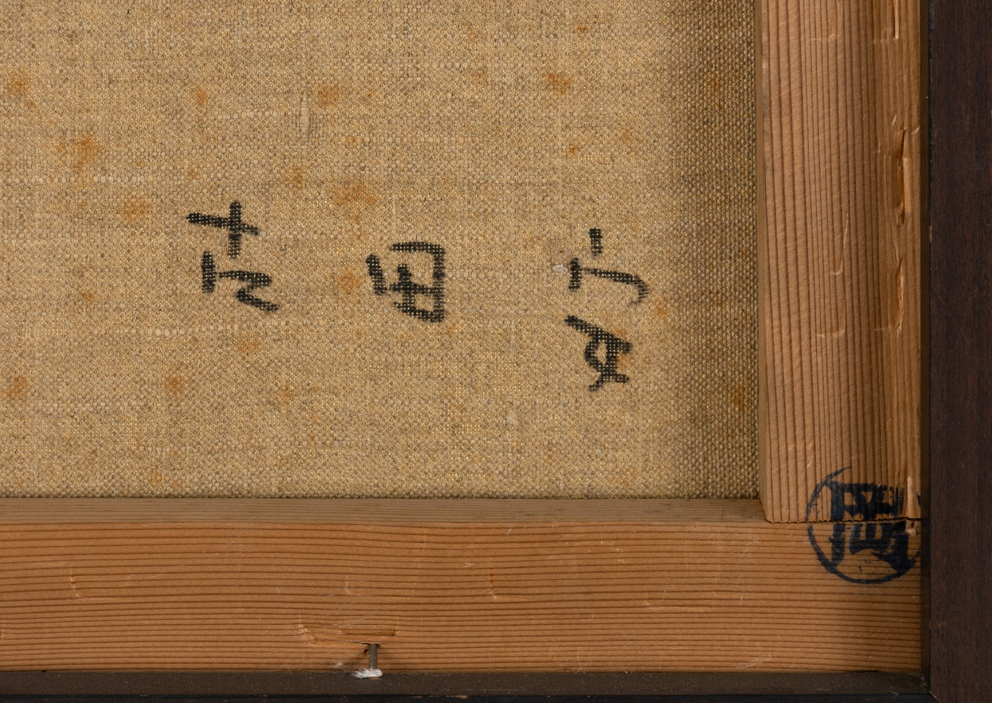 An Furuta was born in Oita Pref., Kyushu, Japan in 1915. At age 16, he started to study oriental painting in Kyoto. In 1934, he went to Tokyo to continue his studies at Kawabata Fine Arts School, but quickly returned to Kyoto to study under two masters, Sakakibara Shiho and Murakami Kagaku.