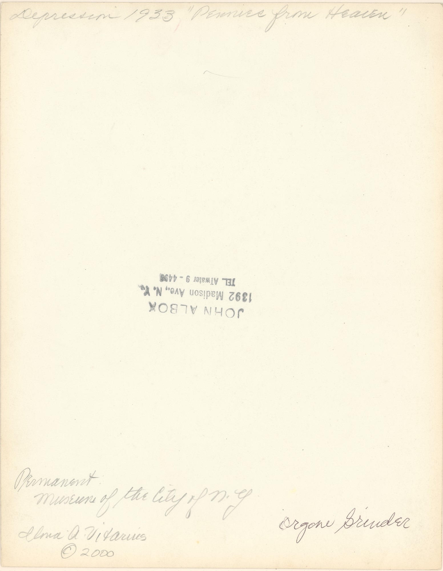 A duplicate print is in the permanent collection of the Museum of the City of New York.