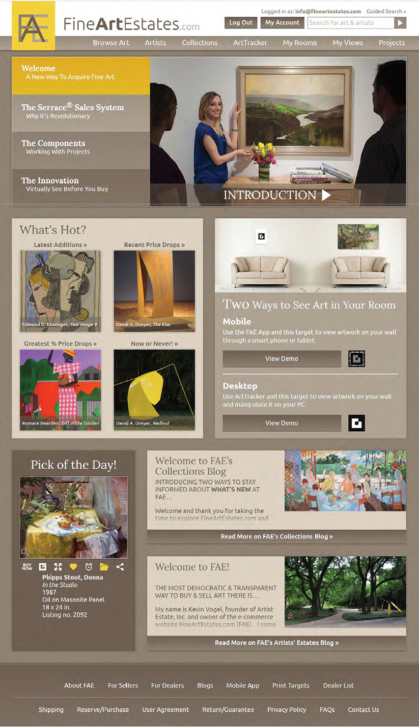 Large estates and collections are not uploaded to the FAE site all at once, as some estate sale and auction sites do. They are campaigned in a thoughtfully planned manner. Each FAE Dealer, in concert with each Seller, carefully develops a customized marketing strategy using their experience and the Serrace Sales System to maximize the monetization of each artwork.